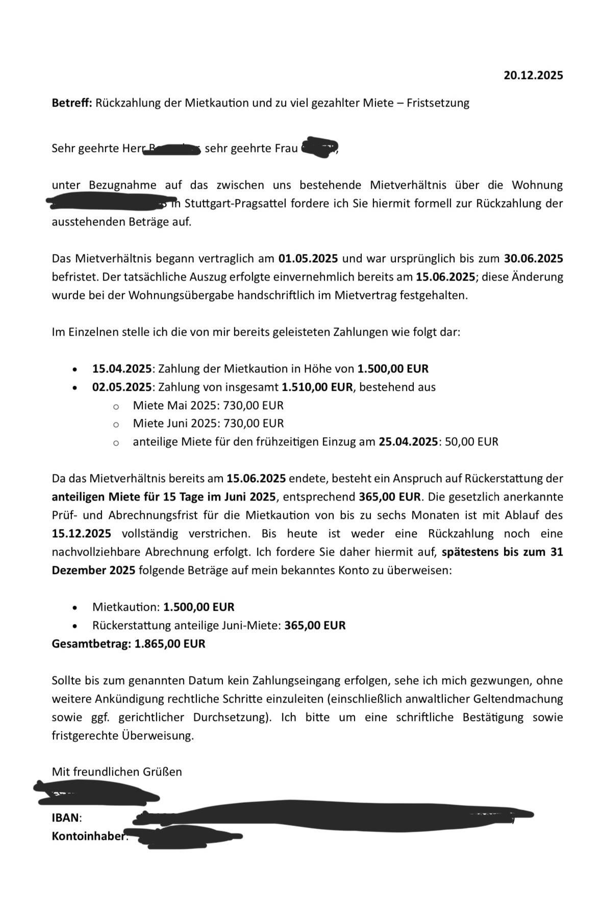 Darf ich diesen Brief an meinen alten Vermieter schicken, der mich bestiehlt?