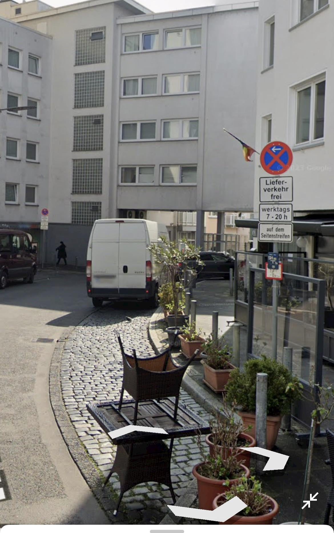Auf dem beigefügten Foto parkt der weiße Transporter in Fahrtrichtung hinter dem Wegweiser. Ich habe mein Auto vor ein paar Tagen an derselben Stelle geparkt und eine Strafe von 25 € erhalten.