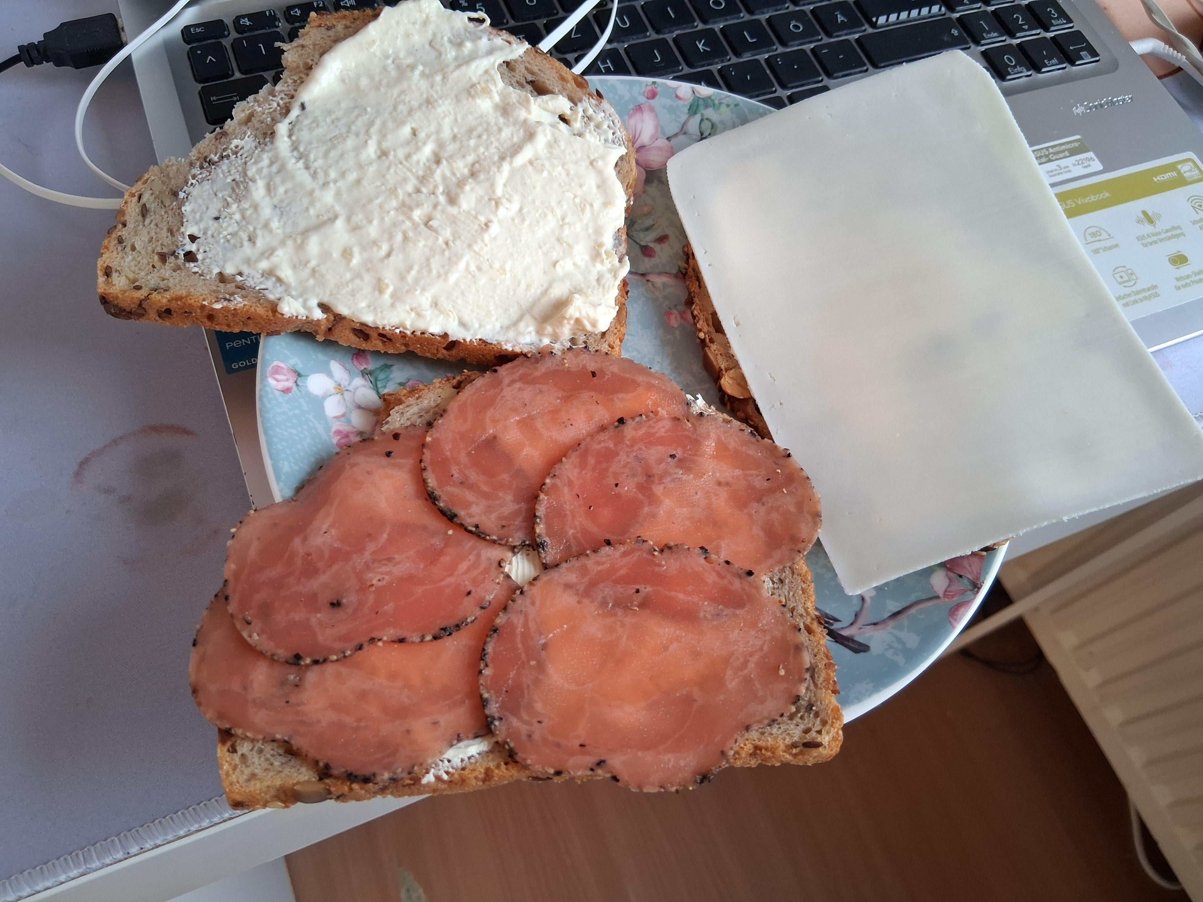 Sein Brot so auf dem Laptop abzustellen sollte verboten sein. Die Krümel zwischen den Tasten kriegst du nie wieder raus…