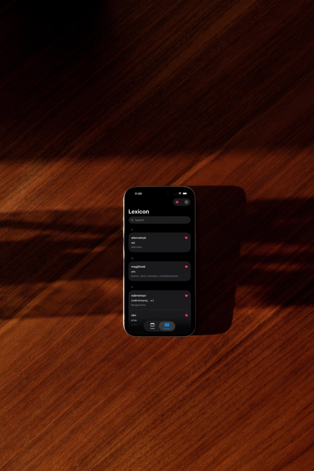 Diese App gibt Ihnen jeden Tag automatisch ein Wort. Wenn Sie das Widget der App zum Sperrbildschirm hinzufügen, wird das aktuelle Wort angezeigt und um Mitternacht aktualisiert. Es verfügt über einen Filter für Phrasen, Substantive, Verben usw., wenn Sie sich auf eine Kategorie konzentrieren möchten. Sie können das Wort auch durch Doppeltippen zu Ihren Favoriten hinzufügen und jederzeit im Lexikon darauf zugreifen. Das Konzept besteht darin, dass wir, da wir so oft am Tag auf unser Telefon schauen, die Möglichkeit haben, uns das Wort leichter zu merken, wenn wir es immer wieder sehen.