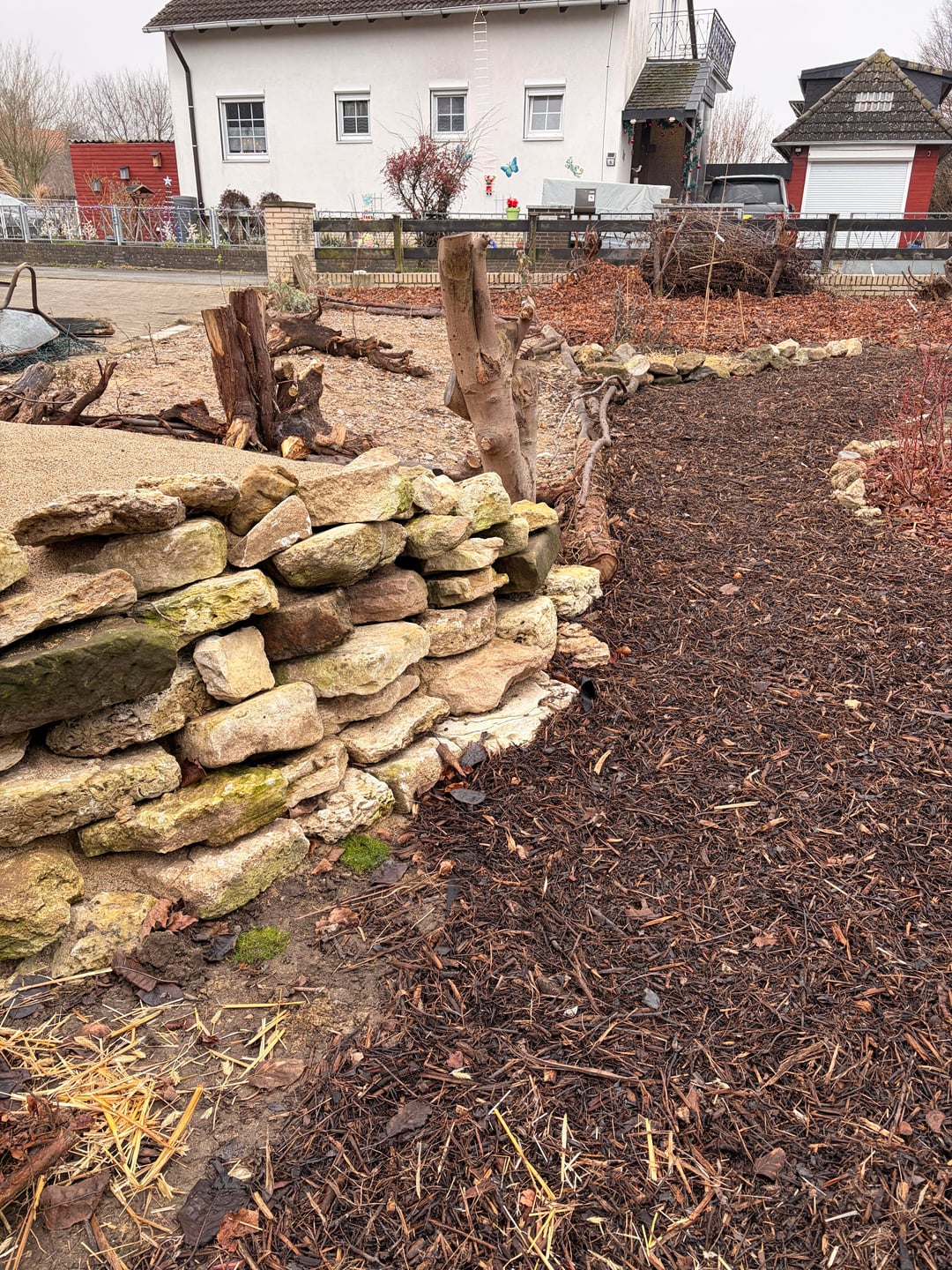 Hier mal ein paar Fotos von meiner frisch angelegten Naturgarten Fläche. Ist alles im Herbst 2025 gekommen. Laub hab ich mir von überall geholt (heimische Bäume, viel Ahorn und Eiche)