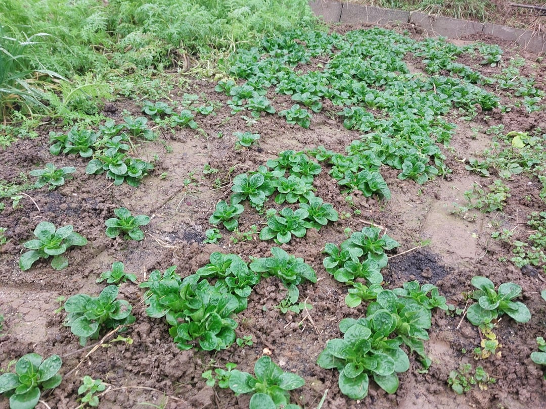 Die bislang weitgehend frostfreie Zeit lässt sich weiter hervorragend nutzen. Der Feldsalat ist mir in diesem Jahr so gut gelungen wie nie zuvor. Da kommt weiterhin frisches Grünzeug in die Küche. Bislang hatte ich den meistens in Permakultur. Dieses Jahr musste ich die wegen Bauarbeiten an der Stelle aufgeben und habe im August frisches Saatgut auf die Stelle gestreut, an der die Frühkartoffeln waren. An den risengroßen Salatpflänzchen sieht man, dass sich die Investition in frisches Saatgut deutlich lohnen kann. Ich denke, das werde ich so beibehalten und die Permakultur aufgeben.
