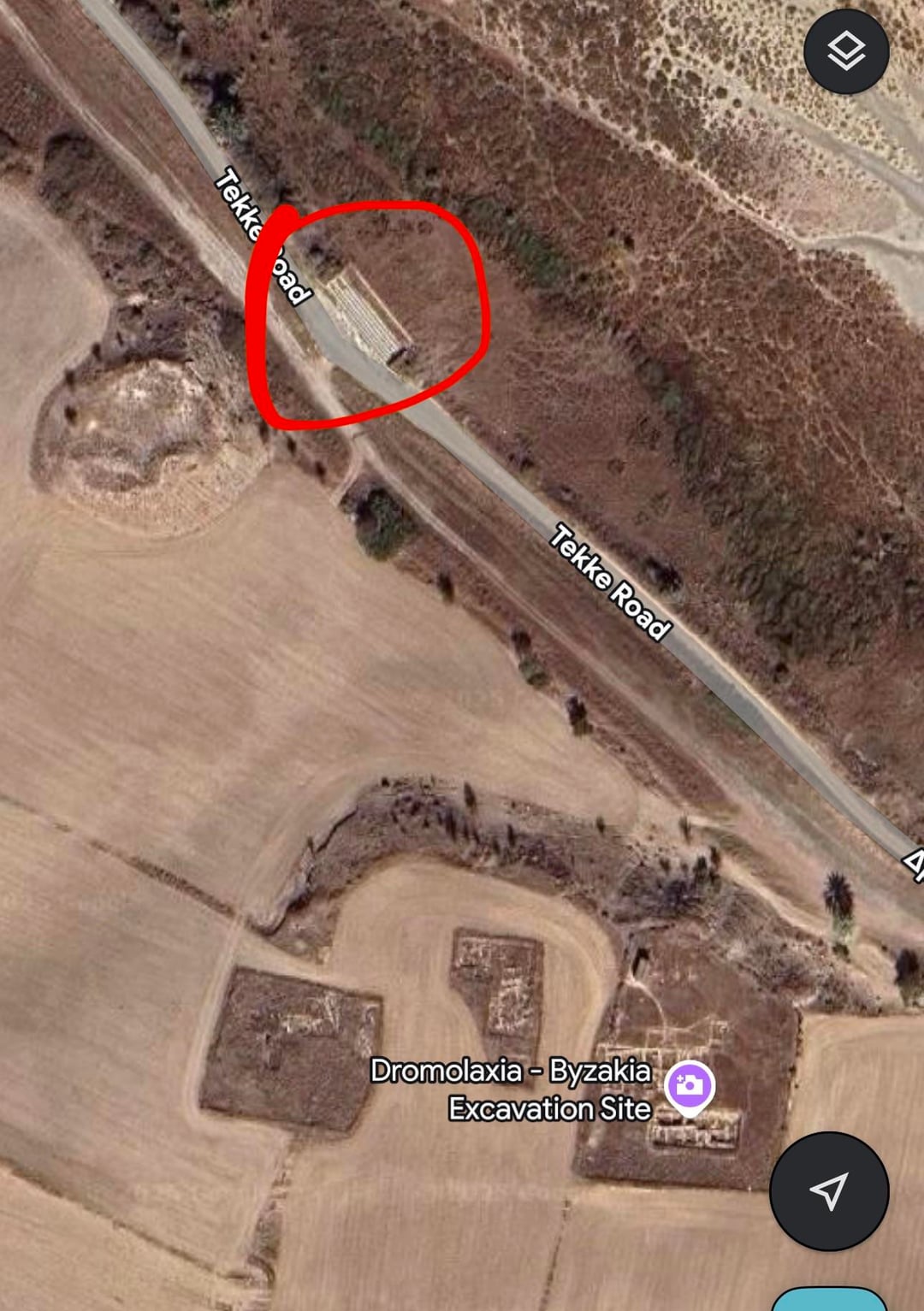 On your screenshot is an excavation site , dromolaxia-vyzakia excavation site. Really close. Possibly there was another ancient structure. Stairs are a really strong part of buildings and stay long after the surrounding walls collapse. Thats why they stand in the middle of nothing.