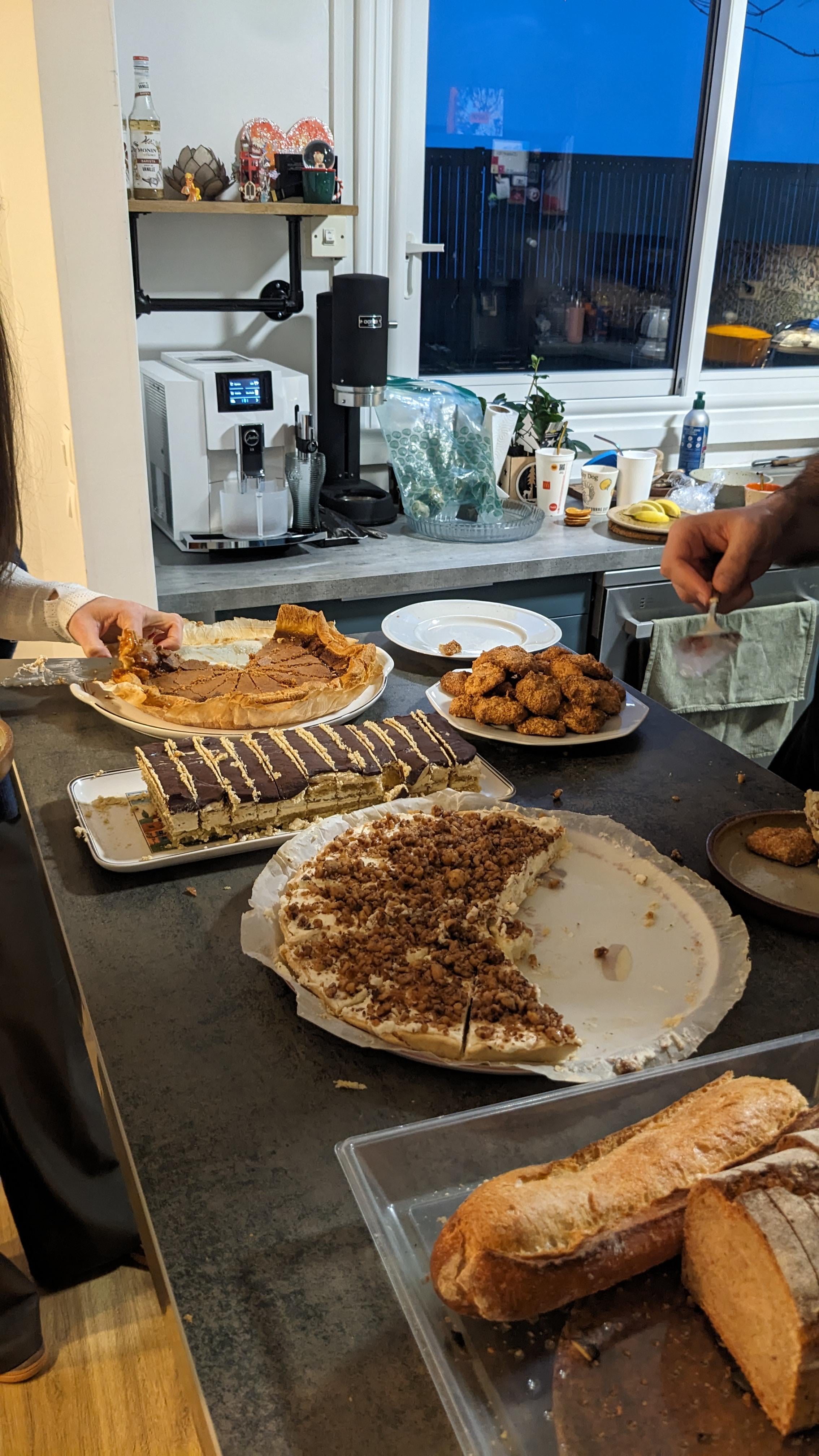 Wir sind eine französische Familie und haben zu Weihnachten ein belgisches Abendessen zubereitet. Zum Nachtisch habe ich einen Zuckerkuchen, einen brasilianischen Kuchen und einen Javanais gemacht.