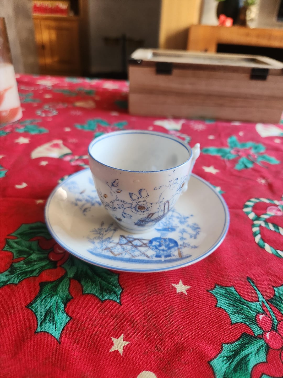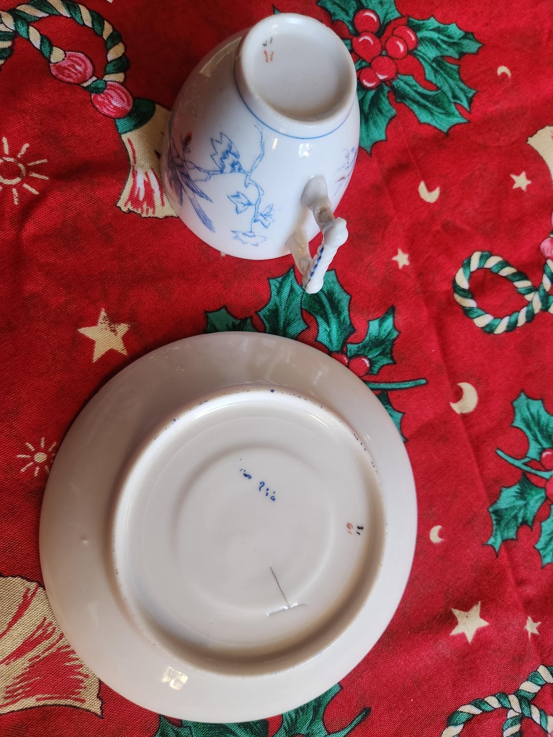 Hallo zusammen, meine Mutter bekam mysteriöse Tassen, als ihre Mutter starb. Sie haben schon immer in Drenthe gelebt. Wir haben uns Google Lens angeschaut und es konnte nichts aussagekräftiges darüber sagen. Kann hier jemand sagen, ob es sich um echtes Knochenporzellan aus dem 14. Jahrhundert handelt? Vielen Dank im Voraus. (Wir haben 6 Paar solcher Tassen und Untertassen)