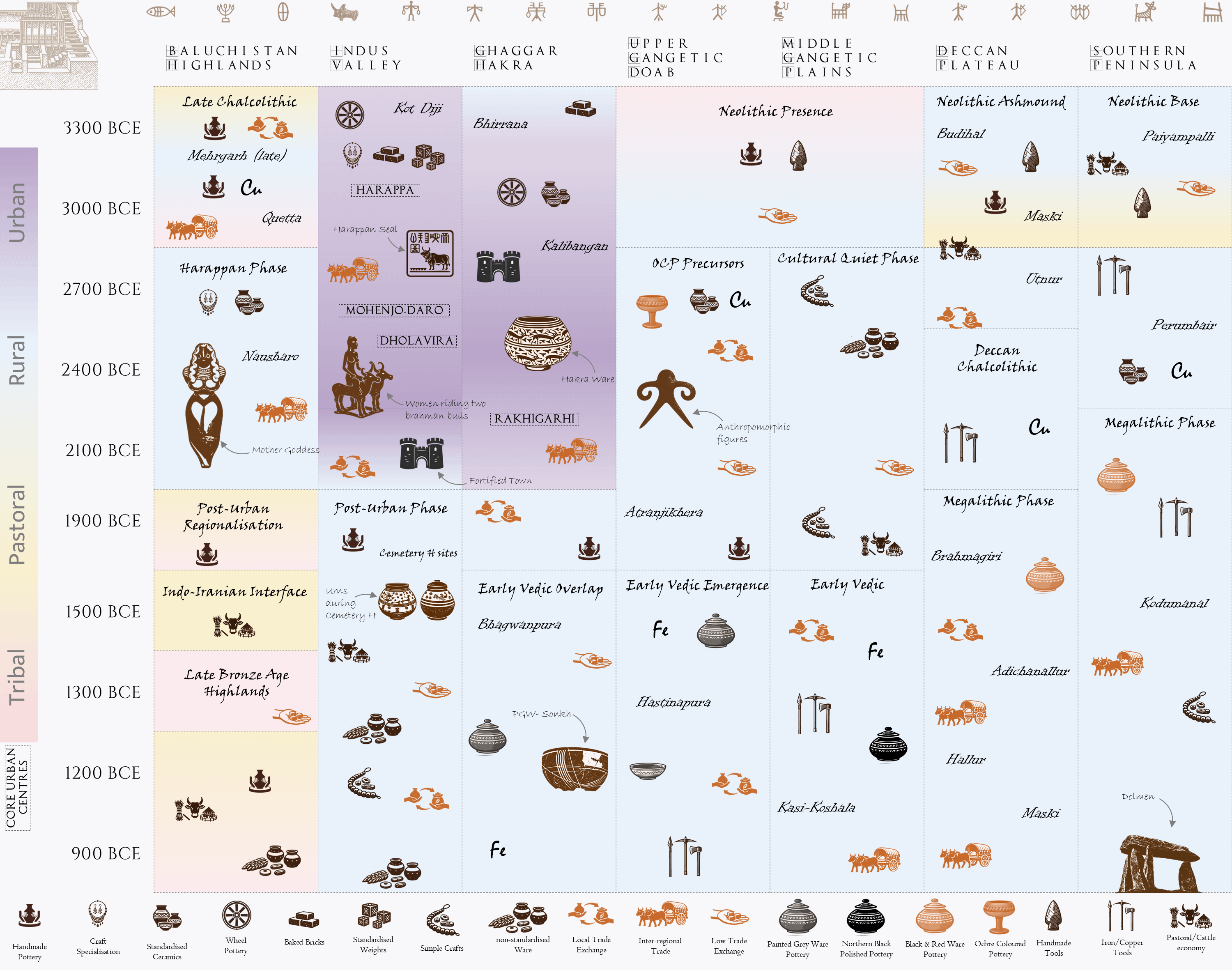 Das [Histomap timeline ]()wurde aus persönlicher Neugier heraus erstellt, um die kulturellen und materiellen Veränderungen der Harappan-Zivilisation und den späteren Übergang zur vedischen Zivilisation darzustellen.