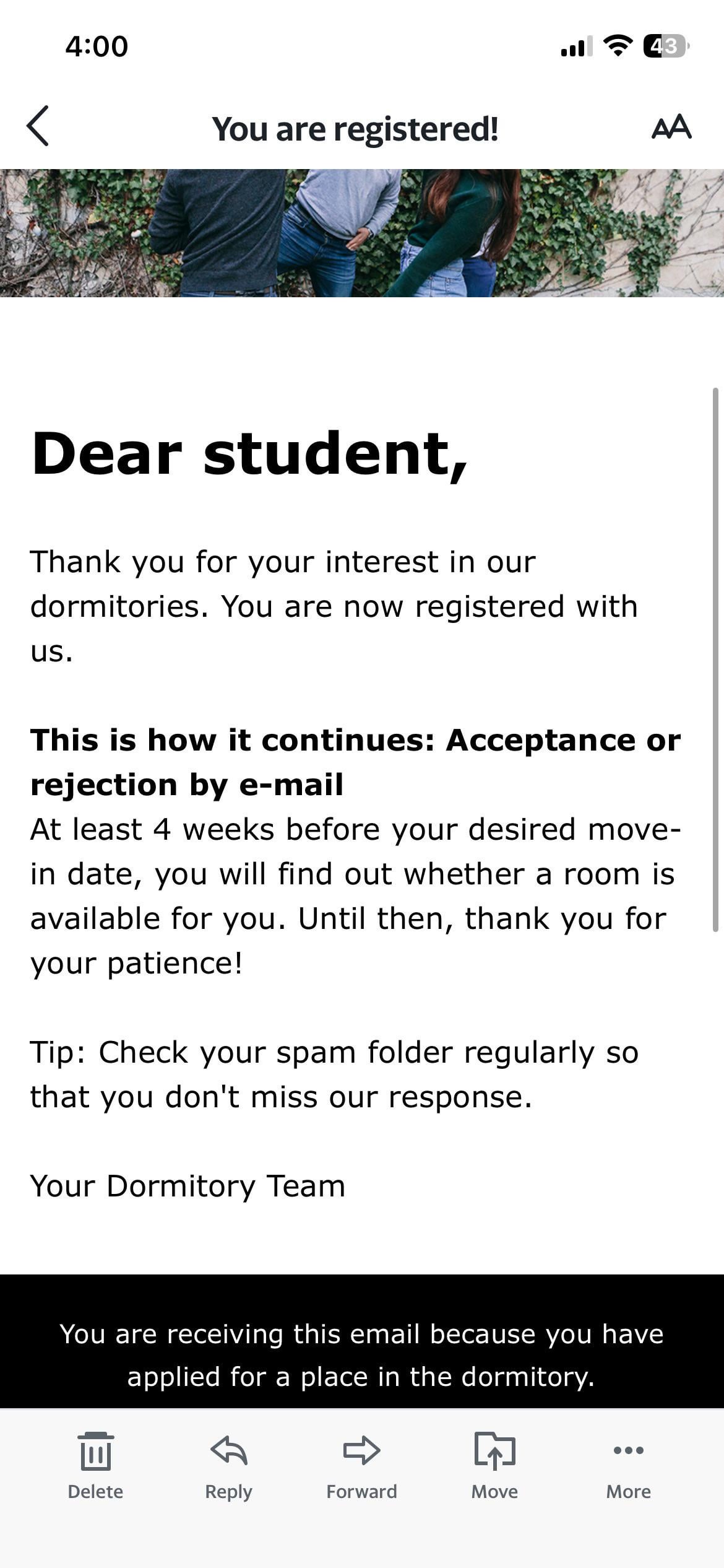 Ich beantrage ein deutsches Studentenvisum. Ich habe mich für ein Studentenwohnheim beworben und nachdem ich meine Bewerbung eingereicht hatte, erhielt ich eine E-Mail mit dem Hinweis, dass ich auf der Warteliste stehe und warten muss.