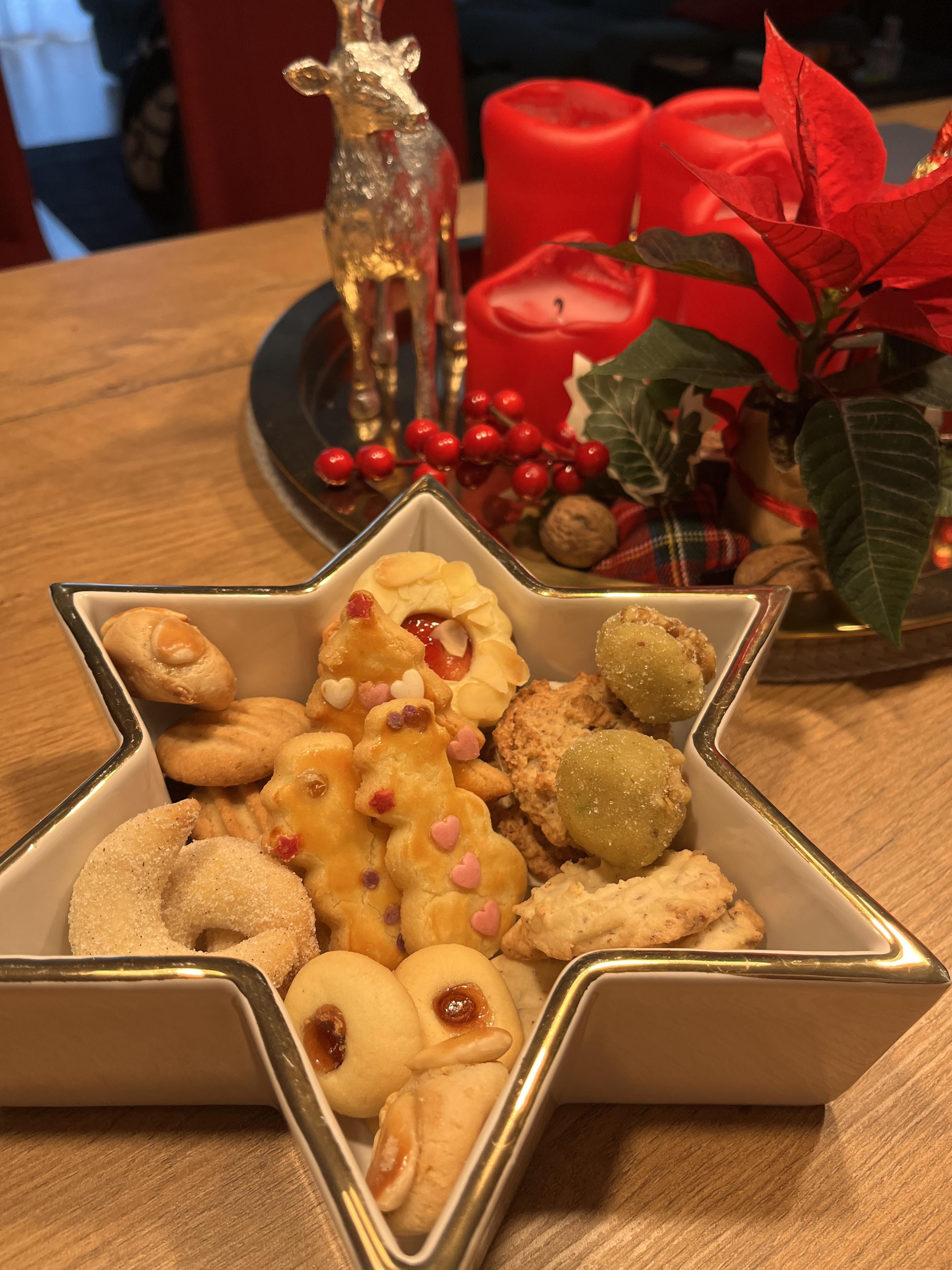 Bei uns zu Hause wurde im Dezember fleißig gebacken. Da wir von November bis Mitte Dezember allesamt krank waren, hatten wir alle Plätzchensorten erst Ende Dezember beisammen. Umso mehr freue ich mich auf das jetzige gemütliche Plätzchenessen am 2. Weihnachtsfeiertag🥰 Was sind eure Lieblingssorten. Für mich sind die Ausstecherle (Butterplätzchen) ganz vorne dabei, da es mir am meisten Spaß macht diese zu verzieren:)