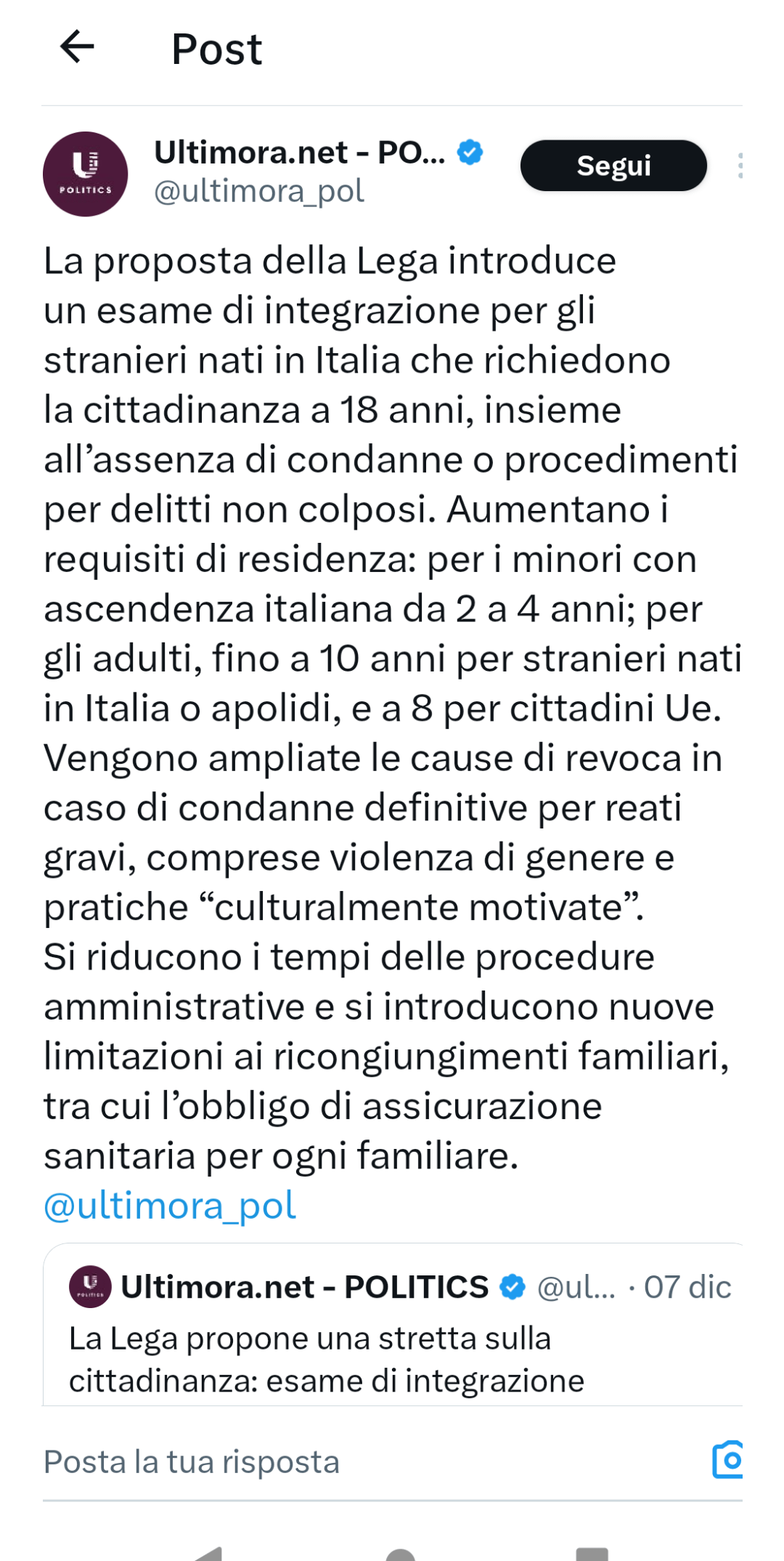 >“Per ottenere la cittadinanza serve non aver commesso delitti NON COLPOSI“: già c’è nei requisiti per ottenere la cittadinanza italiana il requisito di non essere pregiudicato per reati violenti Quindi a che serve questa pagliacciata? A nulla Grazie Salvini