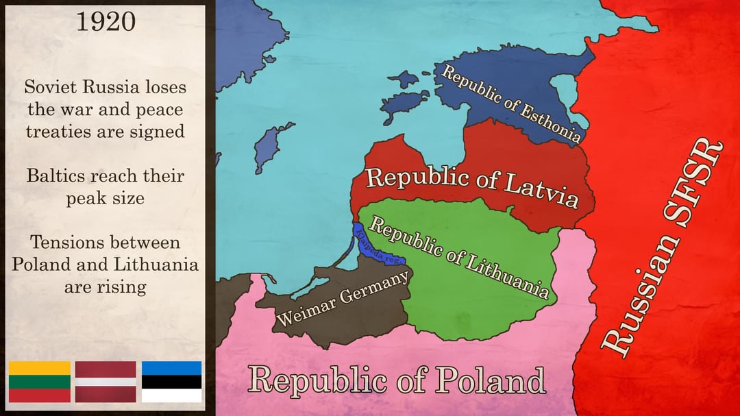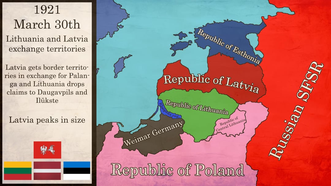 Ich habe diese Karten erstellt, die die wichtigsten territorialen Veränderungen in den baltischen Staaten markieren. Grundsätzlich verlief die Zwischenkriegszeit in Lettland und Estland friedlich, während wir einen Krieg mit den Polen führten. Aufgrund von Konflikten und widersprüchlichen territorialen Ambitionen waren die Karten in den ersten Jahren nicht genau.