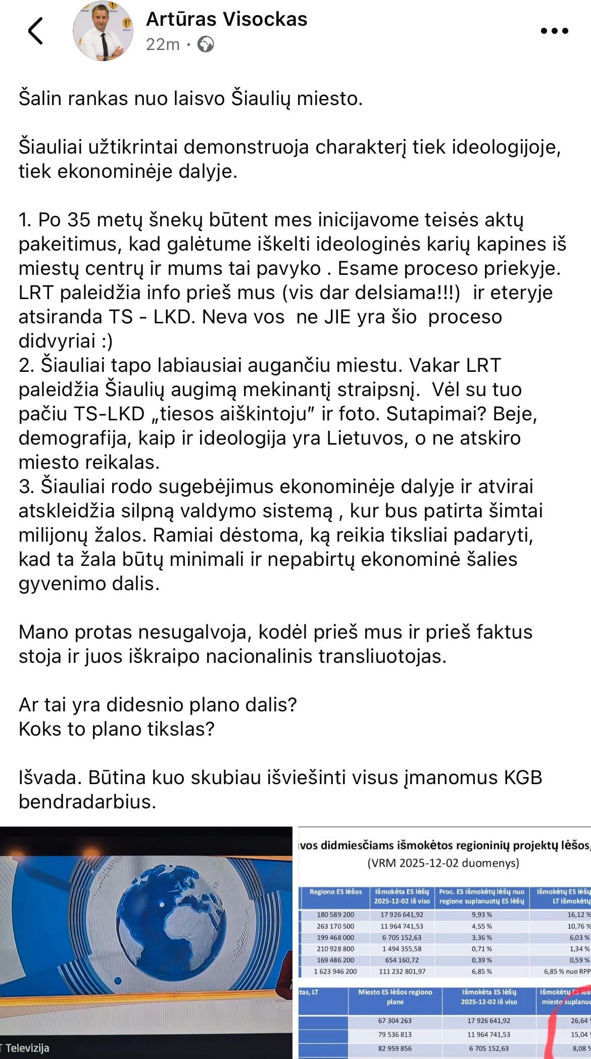 Was denken Sie über diesen Charakter? Er unterstützt Zemaitaitis, er unterstützte früher alle Arten von Lebern, Puidouks und anderen Sohlen, jetzt macht er regelmäßig Witze darüber, dass die Proteste unnötig waren und LRT böse sei. Vielleicht zu wenig Aufmerksamkeit für diesen Charakter? Verdächtiges Duo, egal was passiert. Wie schätzen ihn die Menschen in Šiauli selbst?