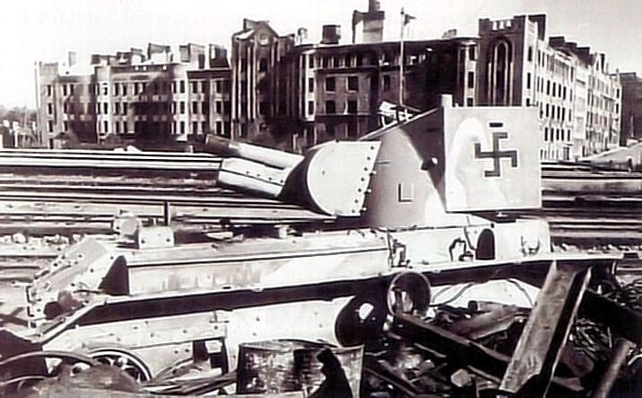 According to google, the image (as in whole) is: Beaten Finnish assault gun BT-42 at the Vyborg station (June 1944)