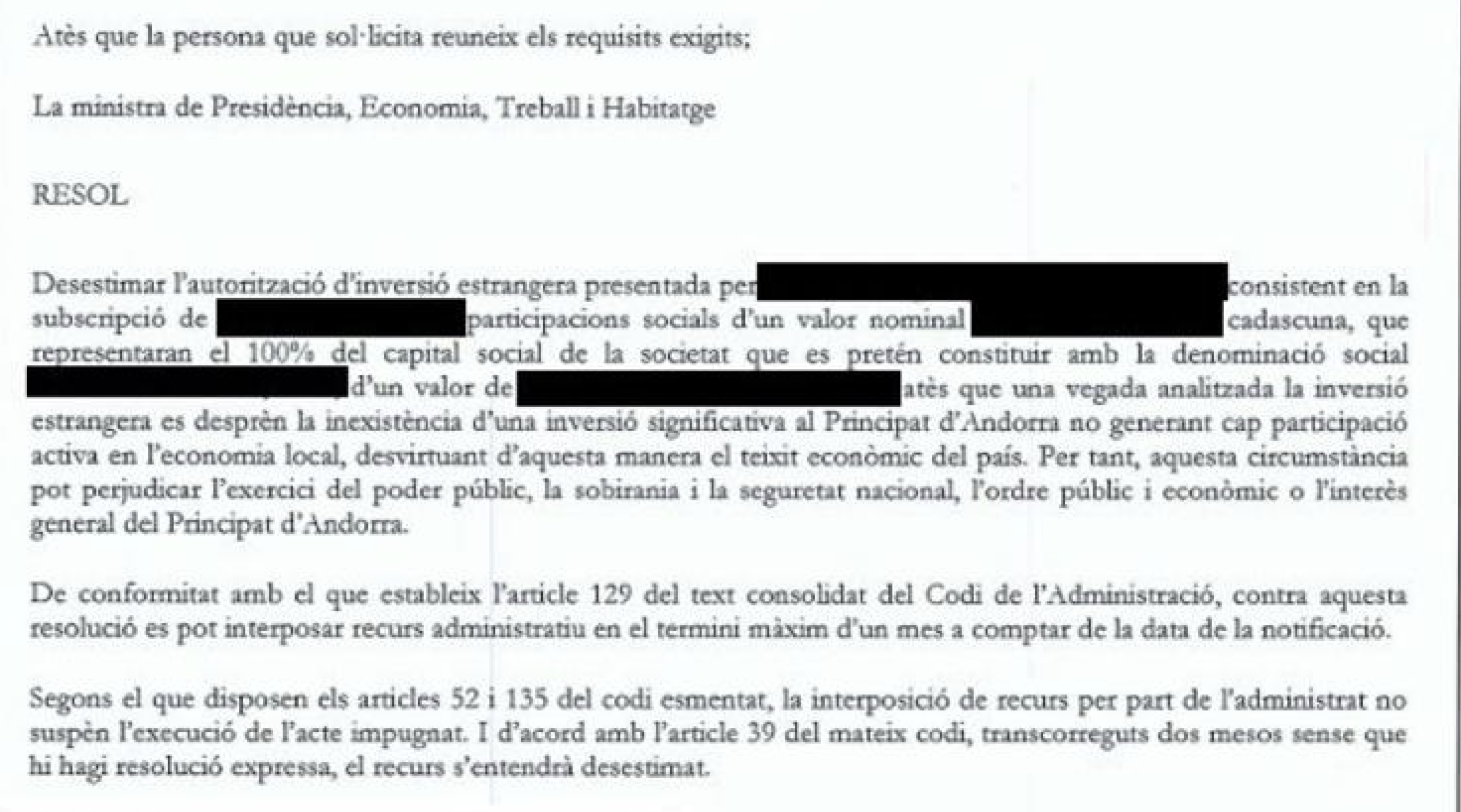 (Dokument) Andorra akzeptiert keine ausländischen Investitionen mehr, die nicht „zur lokalen Wirtschaft“ beitragen.