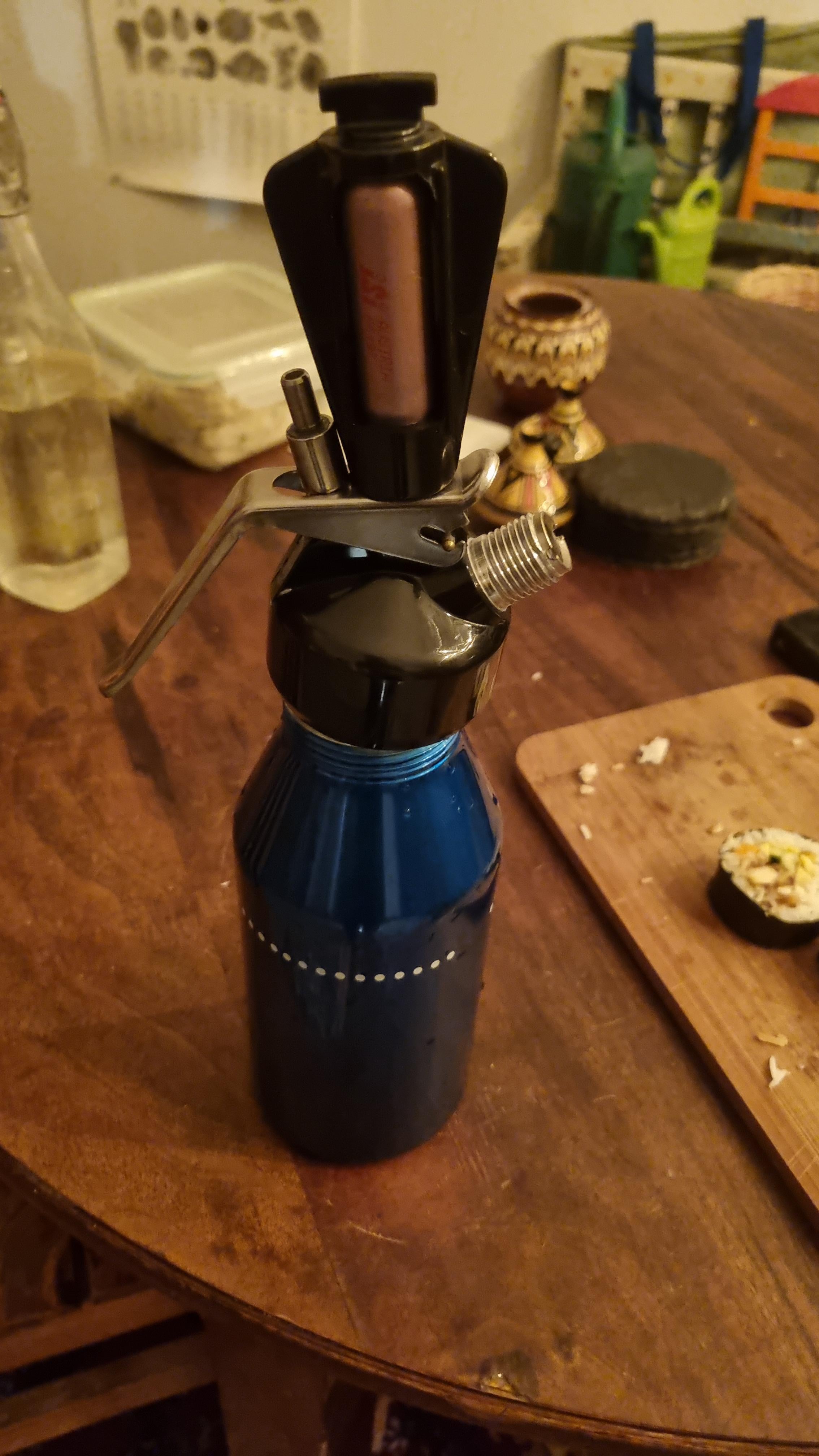 Guten Tag und frohes Neues. Wir haben diesen Stickstoffapparat in einer Verschenkekiste gefunden und bekommen die Kartusche nicht aus dem "Munitionslager". Das genaue Gerät habe ich nicht gefunden, es ist aber scheinbar nicht die gleiche Marke wie die Kartusche. Weiß da jemand mehr? Gibt es einen geheimen Trick, wie man die Kartusche wechseln kann? Vielen Dank schon mal und gutes gelingen für all eure Kocherfahrungen in 2026.