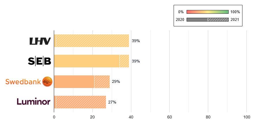 Ich habe gehört, dass LHV stark ist, was beispielsweise auch Kapital aus dem Ausland nach Estland bringt. (Bisher sind wir nur das Abheben gewohnt) Und die Coop-Bank hat viele verschiedene Unterstützungsmöglichkeiten.