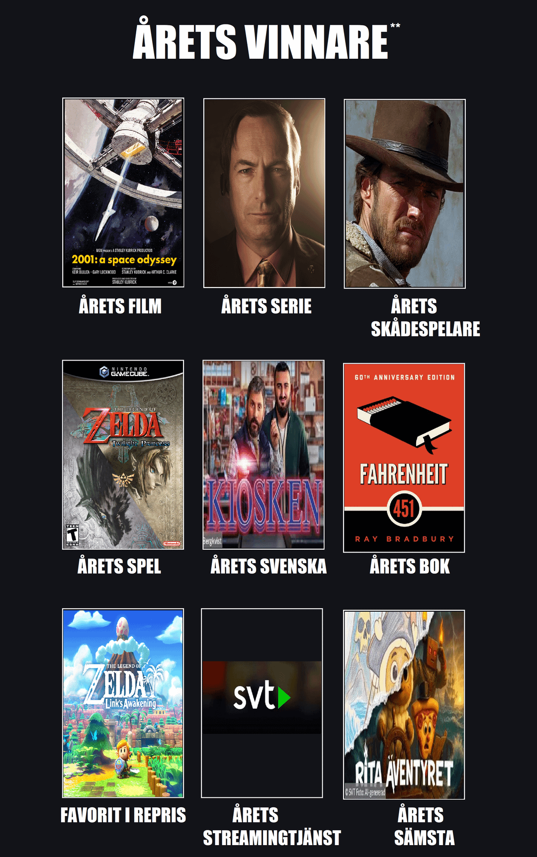 **Unter den diesjährigen Gewinnern habe ich nur Filme/Serien/Spiele/Bücher ausgewählt, die für mich neu waren, außer natürlich der Kategorie "Favorit in Wiederholung"