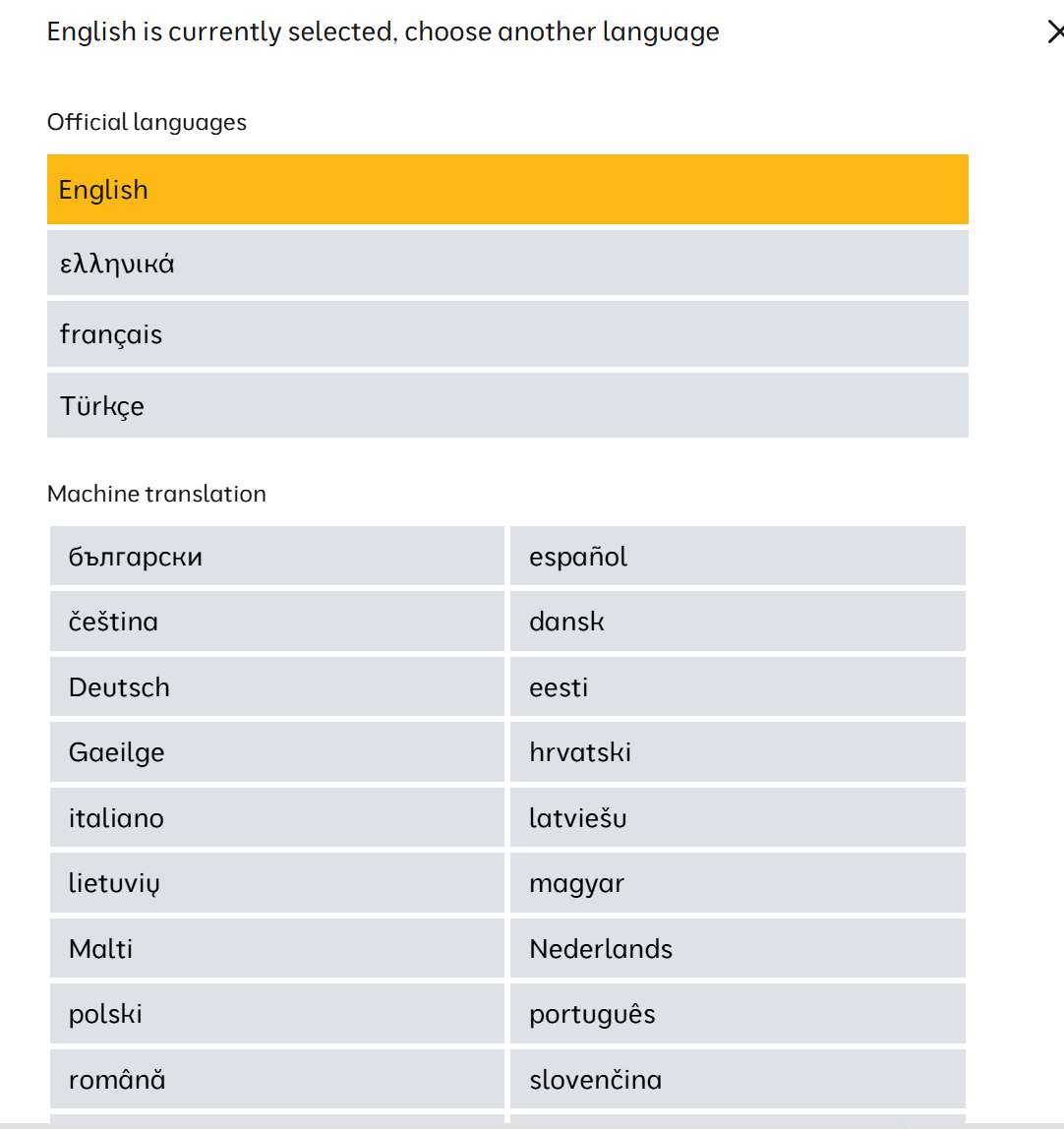 Didn’t understand the French? It is obviously not for Cyprus but probably for Belgium or the EU; however, then why not German?