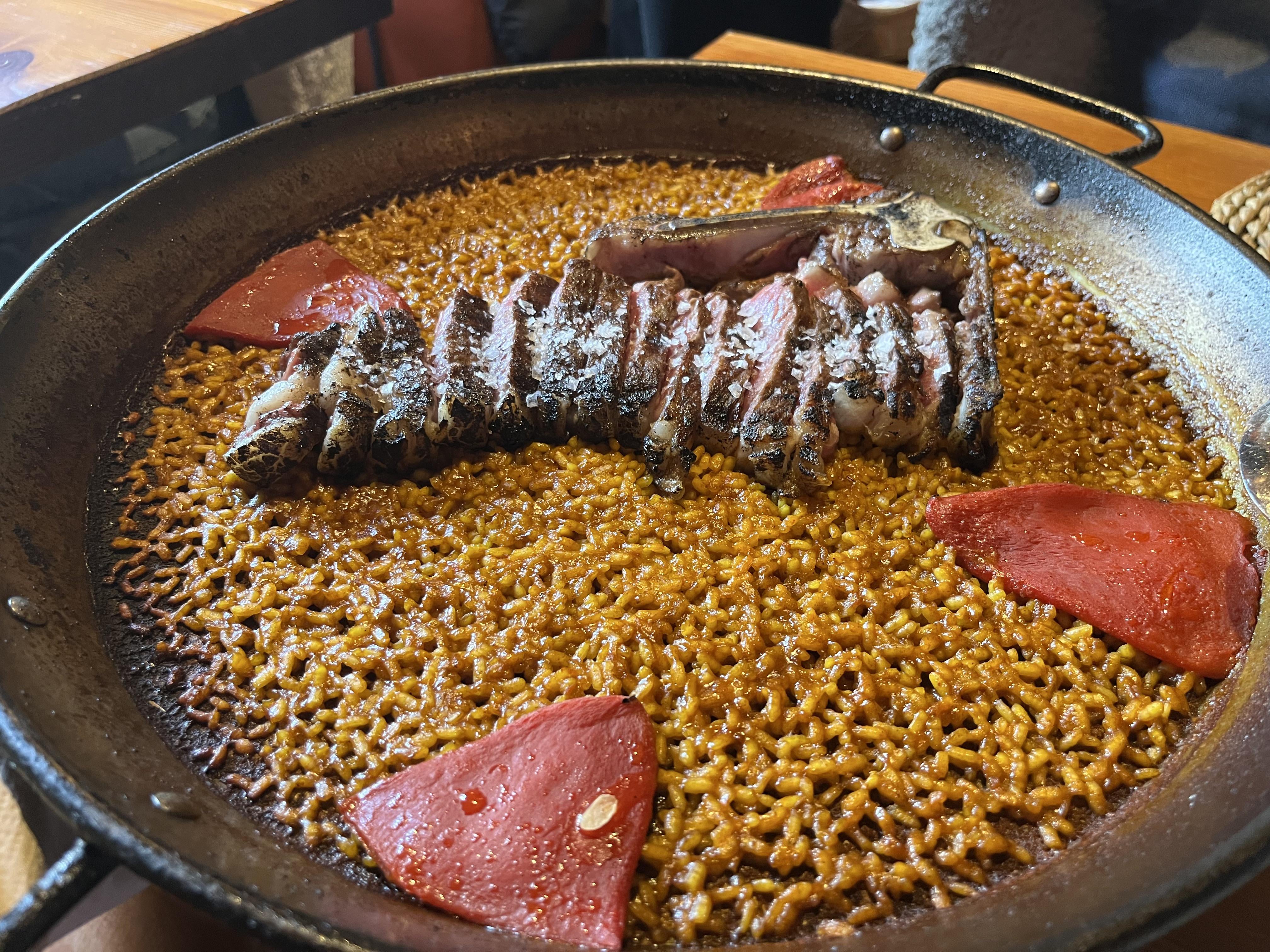 Pinta y punto, muy bueno parece. Aunque también parece que haya 1 grano de arroz por cm2 de paella