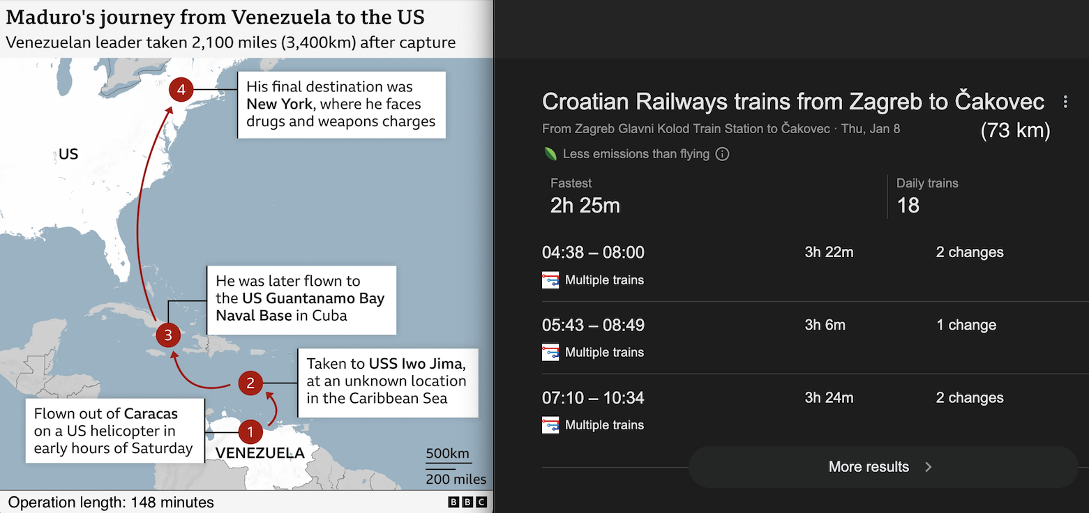 Nije točno da je trebalo 148 minuta od Caracasa do New Yorka. Otprilike 12 sati. Ali kužim poantu.