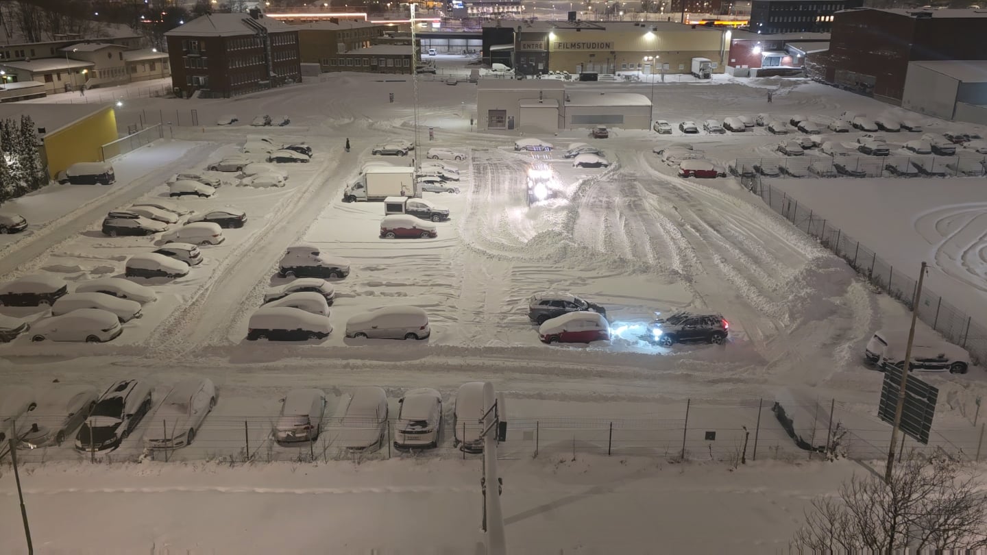 Jag gillar att filma parkeringsplatsen från mitt fönster i Lindholmen.