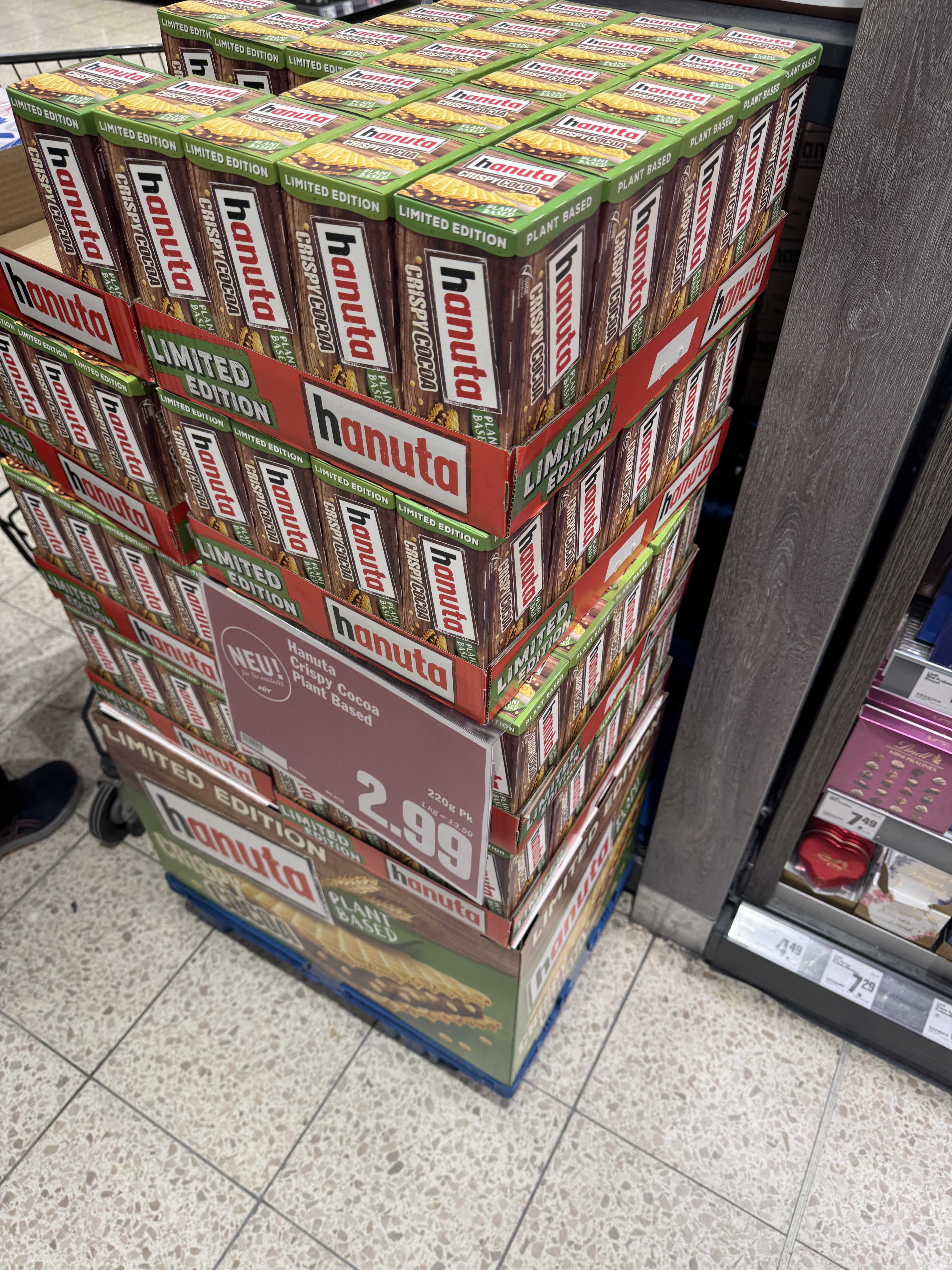 Geben Sie mir sämtliche Hanuta, die Sie haben. Moment. Ich befürchte, was Sie verstanden haben ist:“Geben Sie mir viele Packungen Hanuta“.