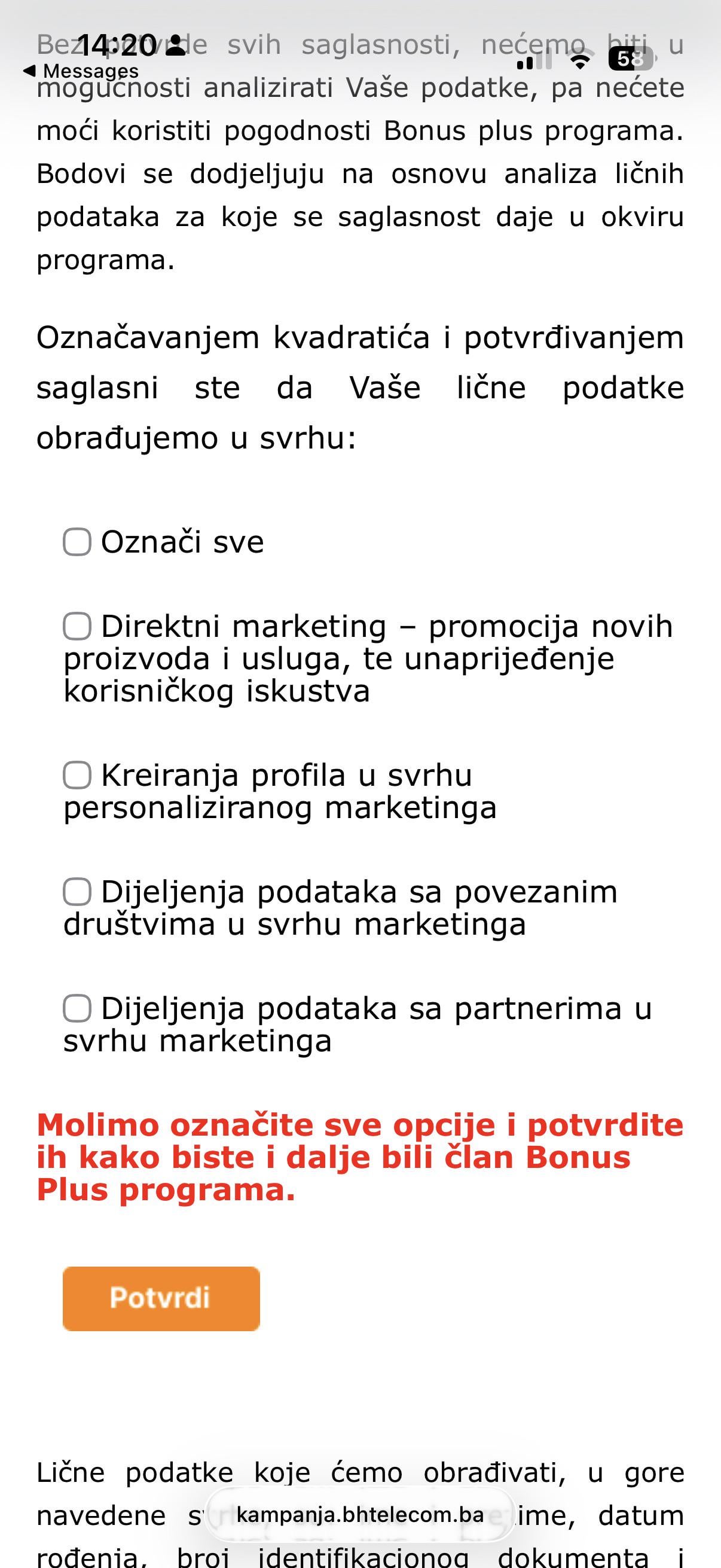 Ili ces dozvoliti da ti koriste podatke i dobijes bonus bodove ili neces pristati ali ce idalje koristiti tvoje podatke.
