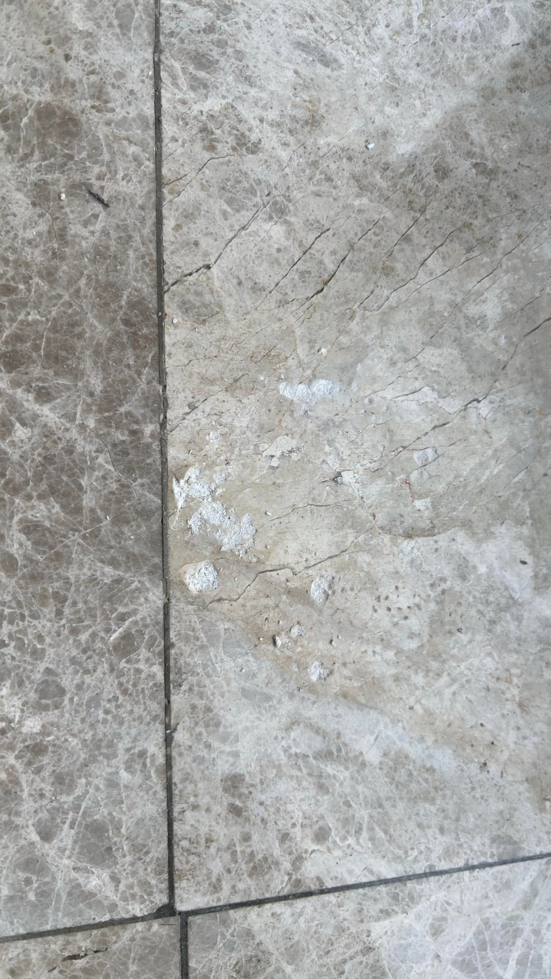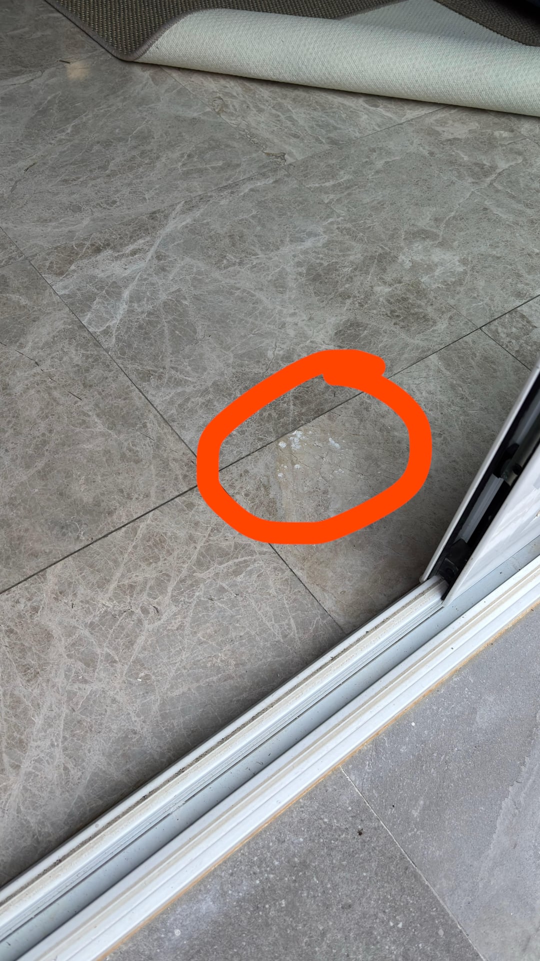 Ich veröffentliche diesen Beitrag, weil der Marmorboden (im Inneren des Hauses) aufgrund der Feuchtigkeit, die durch die auf dem Foto gezeigte Stufe eindringt, abblättert. Konkret denke ich, dass es durch den Riss eindringt, auf den ich hingewiesen habe, und was die Ursache dafür ist, ist das, was Sie auf dem folgenden Foto sehen können, auf dem Sie sehen können, dass sich die Marmorplatte im Inneren ablöst, weil das Wasser durch die Kapillarität von unten eindringt.