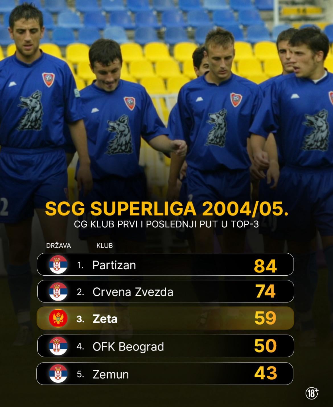 Zeta ist der einzige montenegrinische Verein, der unter den Top 3 der SCG SUPERLIGA war
