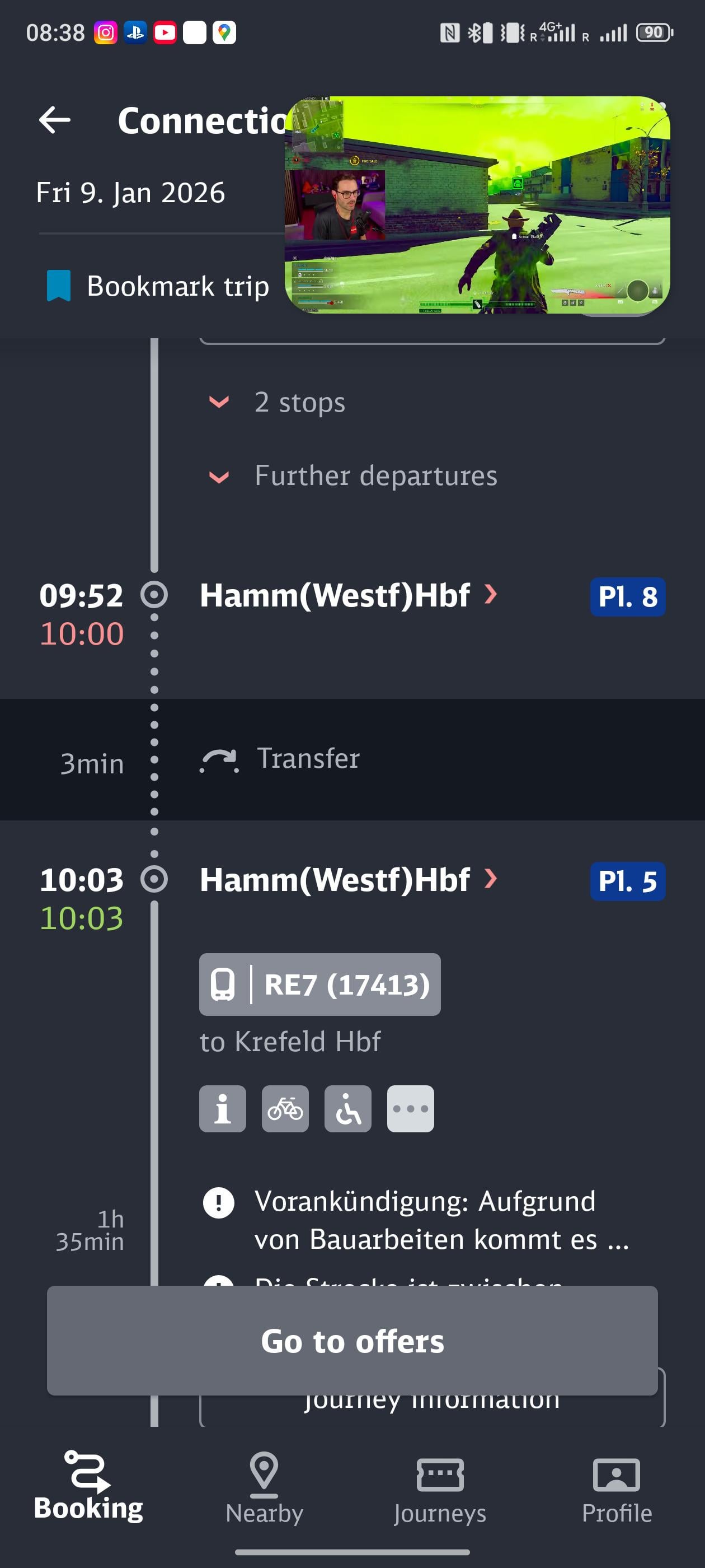 But 3 minutes is under the current weather conditions a bet where you need to prepare to miss the train in Hamm.