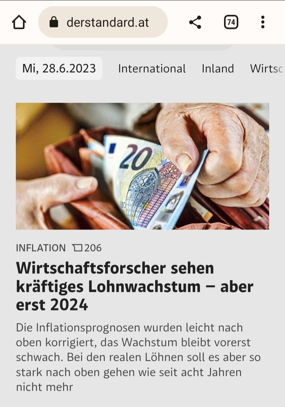 Naja aber die Löhne SIND 2024 deutlich gestiegen, mit Jahreswechsel für die Metaller zB um 8,5 Prozent damals, in vielen anderen Branchen nicht viel drunter. Leider ist damit, logischerweise, auch die Inflation gestiegen.