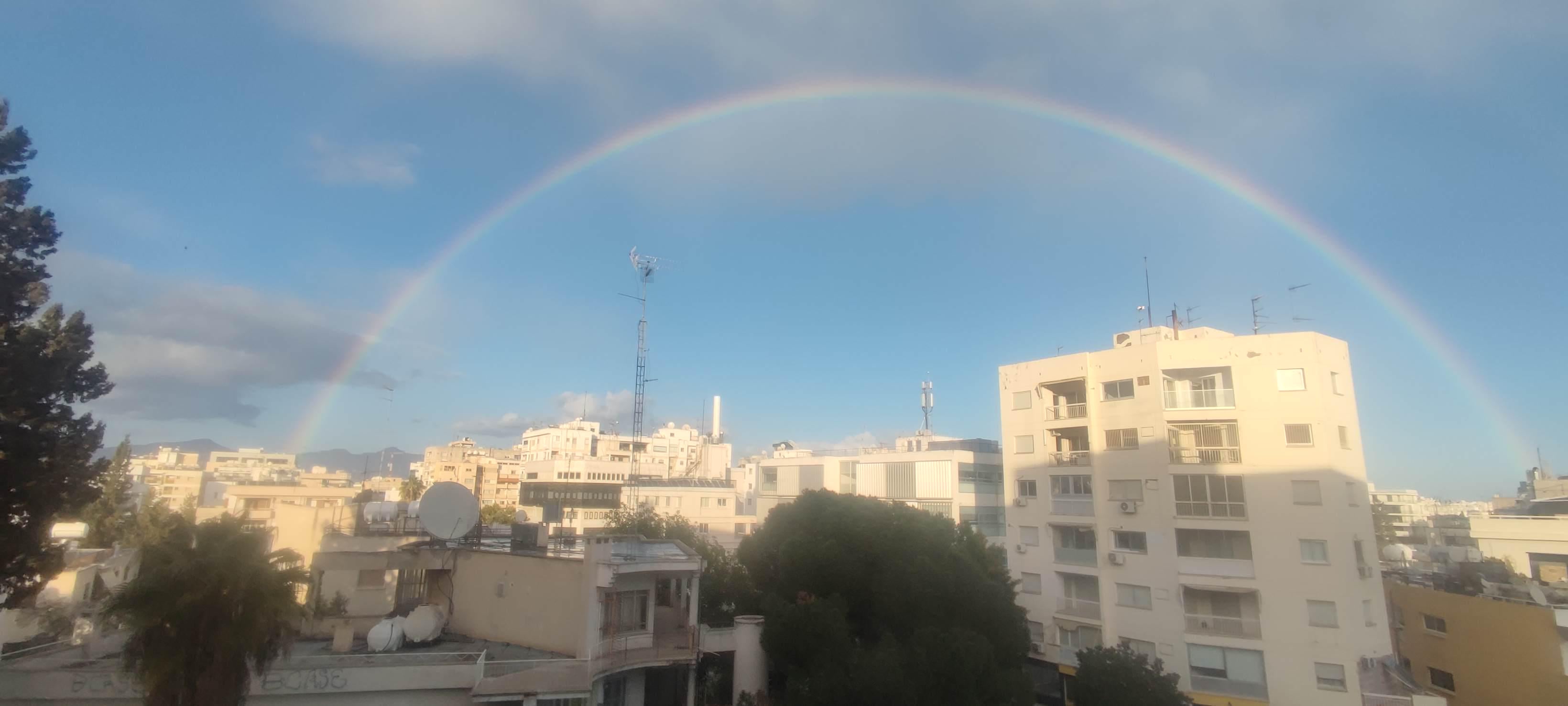 Schöner Regenbogen vom Kirena-Gebirge bis Aglantzia