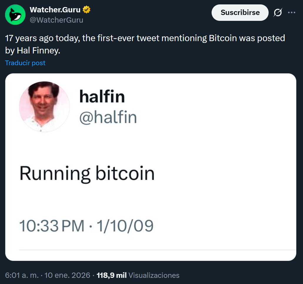 Quellen: Watcher-Guru-Tweet: https://x.com/WatcherGuru/status/2009853020176298076 Hal Finney Tweet: https://x.com/halfin/status/1110302988 https://i.redd.it/66yyr7kpghcg1.png