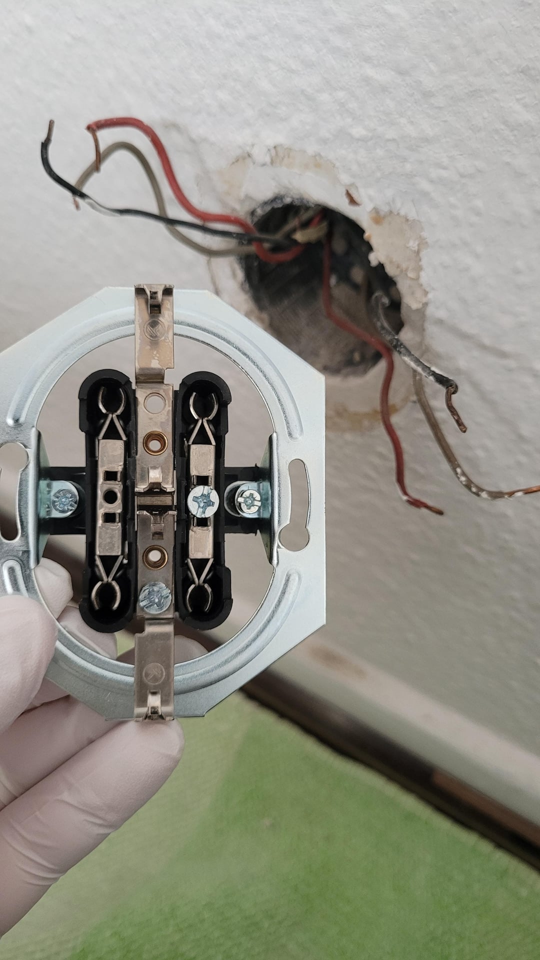 Ich möchte einen kaputten Wandstecker in meinem neuen Altbau austauschen. Es ist ein Doppelstecker. Ich habe festgestellt, dass Farben alter Standard sind. Ich bin mir nicht sicher, wie ich eine Verbindung herstellen soll. Außerdem bin ich es gewohnt, dass alle Kabel einen separaten Einsatz am Stecker haben. Sollten hier zwei davon kombiniert werden?