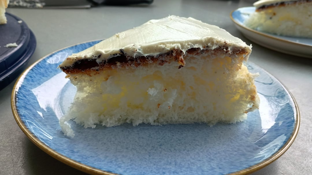 Mein erster Versuch. Super fluffig, beim nächsten Mal muss ich ihn etwas früher aus dem Backofen nehmen.