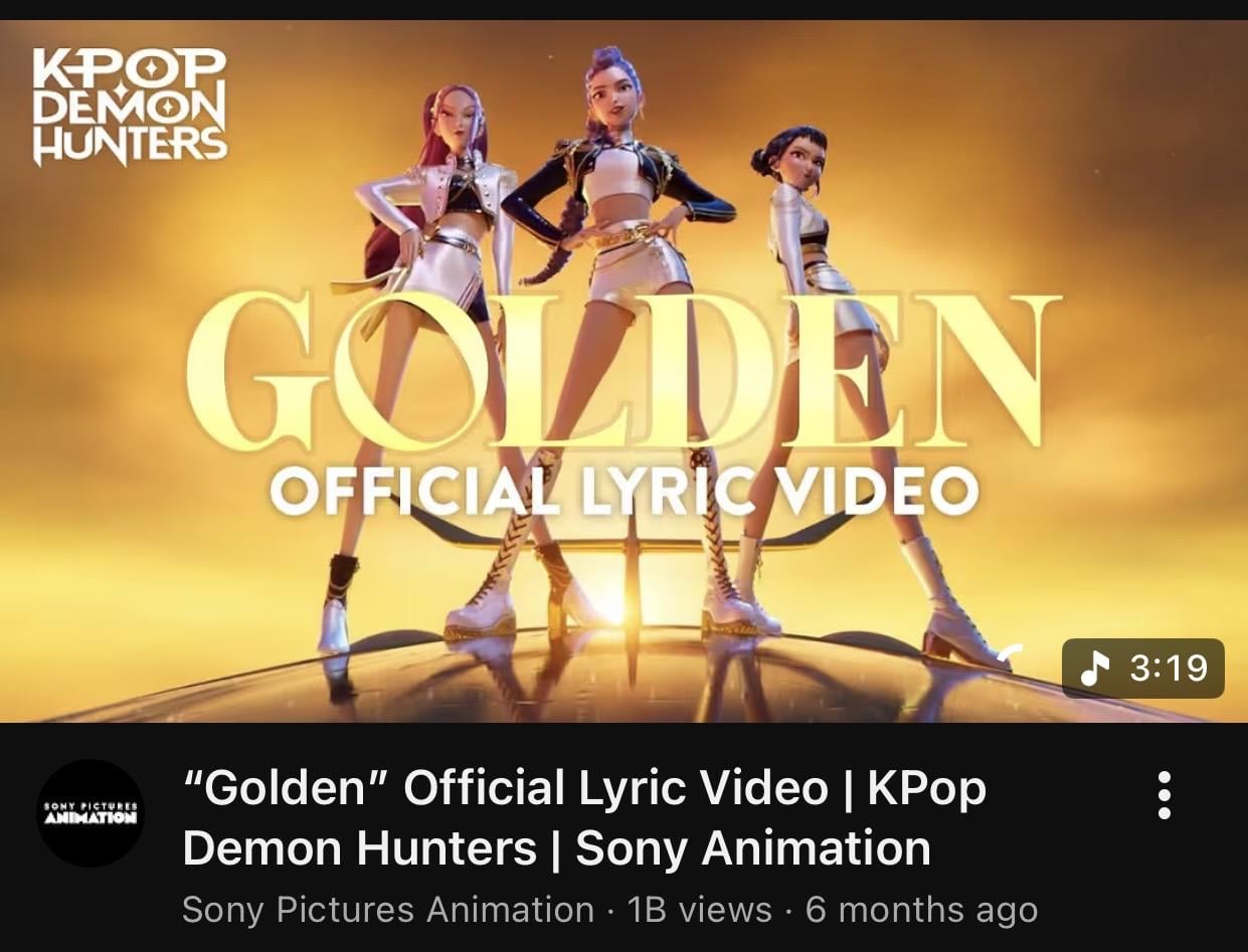 „Golden (Official Lyric Video)“ von HUNTR/X (EJAE, AUDREY NUNA & REI AMI) von den KPop Demon Hunters OST ist das erste MV der Gruppe, das 1 Milliarde Aufrufe auf YouTube erreicht