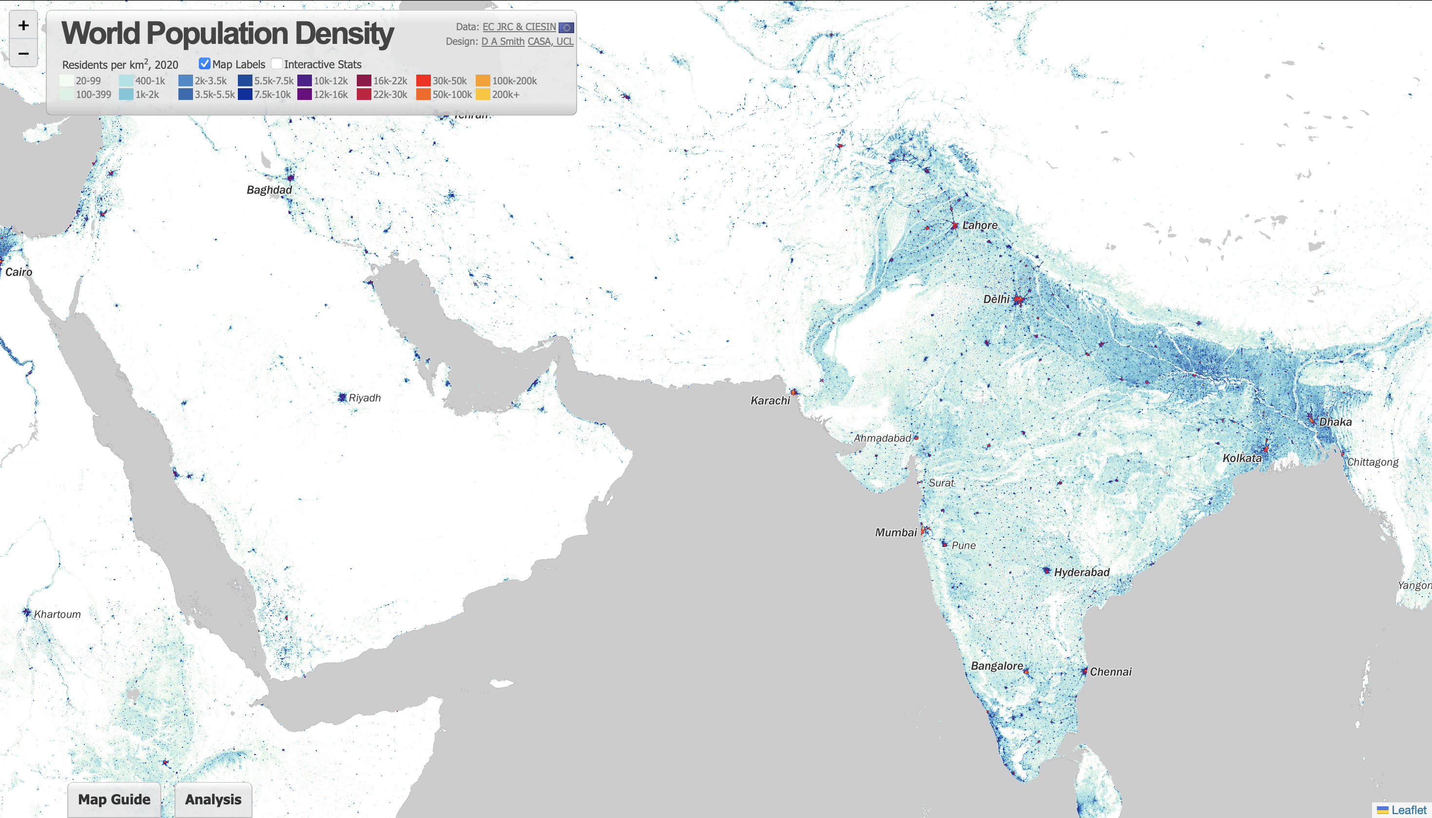 Unterschied in der Bevölkerungsdichte auf dem indischen Subkontinent und der Arabischen Halbinsel