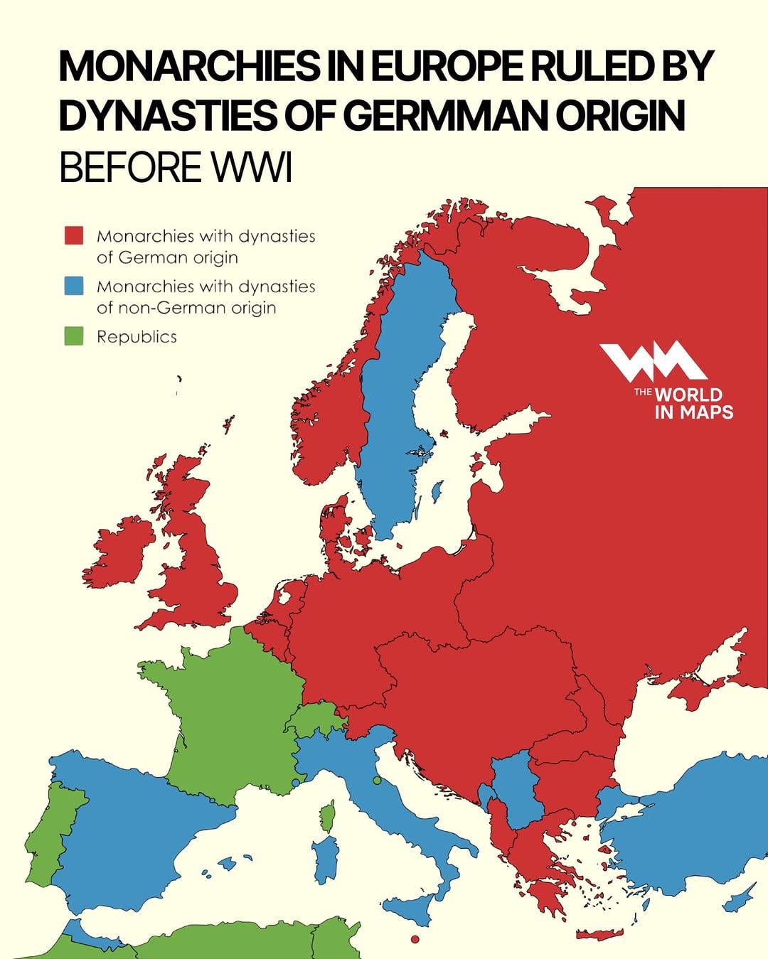 Technically, France had a dynasty of German origin: the ancestors of the French kings were in the Frankish nobility. It was like in the 6th century, very remote, but still Germanic.
