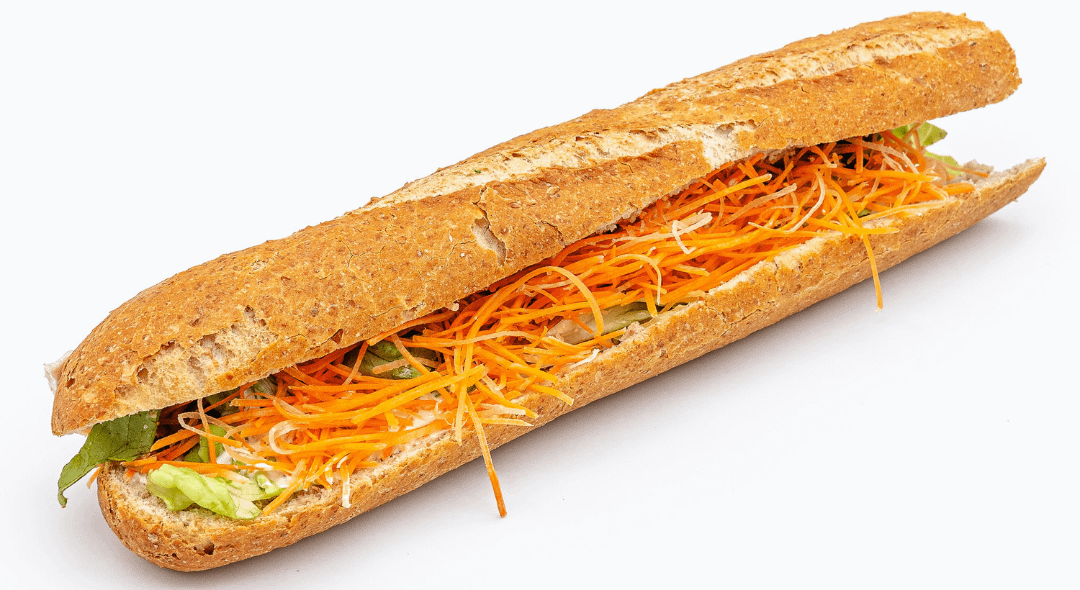 Depends on the cut. You start at the side where the full baguette was cut in half, and work your way to the tip.