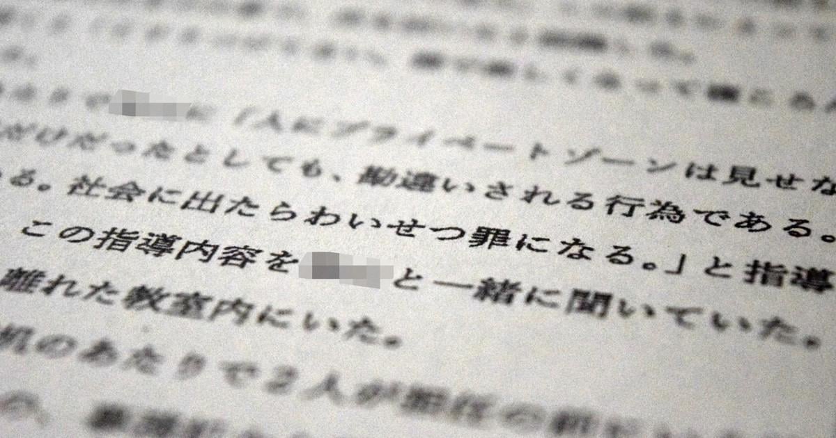 Ein männlicher Oberstufenschüler einer Grundschule in Yatomi wurde von Klassenkameraden beschimpft, nachdem ein anderer Junge dies behauptet hatte "Er rieb seinen Körper nackt am Boden." Die Schule erkannte die Handlungen und Bemerkungen des männlichen Klassenkameraden als Mobbing an, doch der Klassenlehrer und das Personal unternahmen keine Schritte, um das Missverständnis, das sich über den Jungen verbreitete, auszuräumen. Stattdessen nur sie "überwacht" Die Situation führte dazu, dass der Junge schließlich die Schule wechselte.