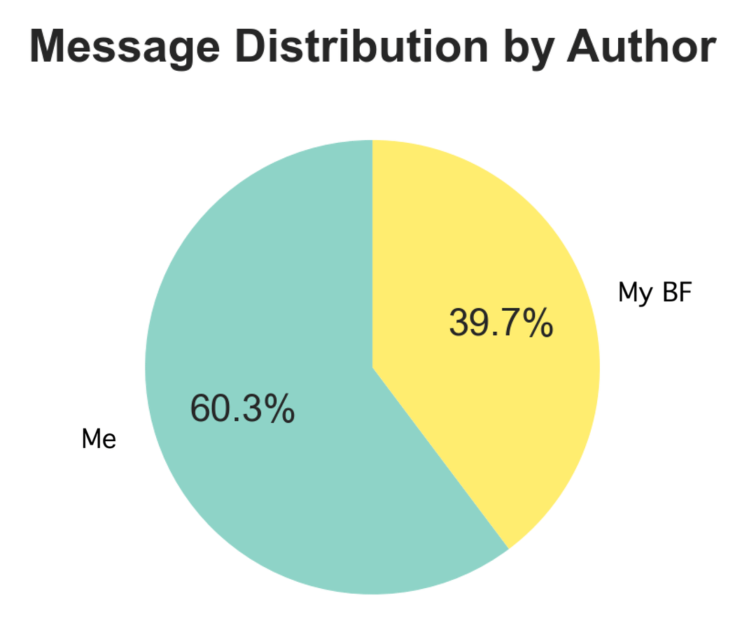 You are doing 60% of the texts!! Going to have to tell the BF to bump up those numbers, they’re rookie numbers.
