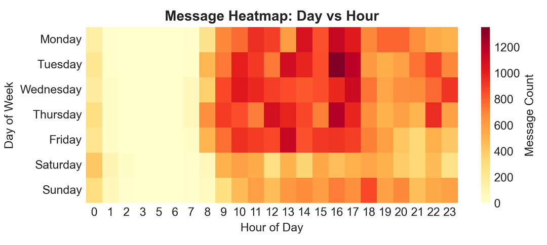 Most heavily texting between 9 and 5 Monday to Friday. I’d hate to be your employer!