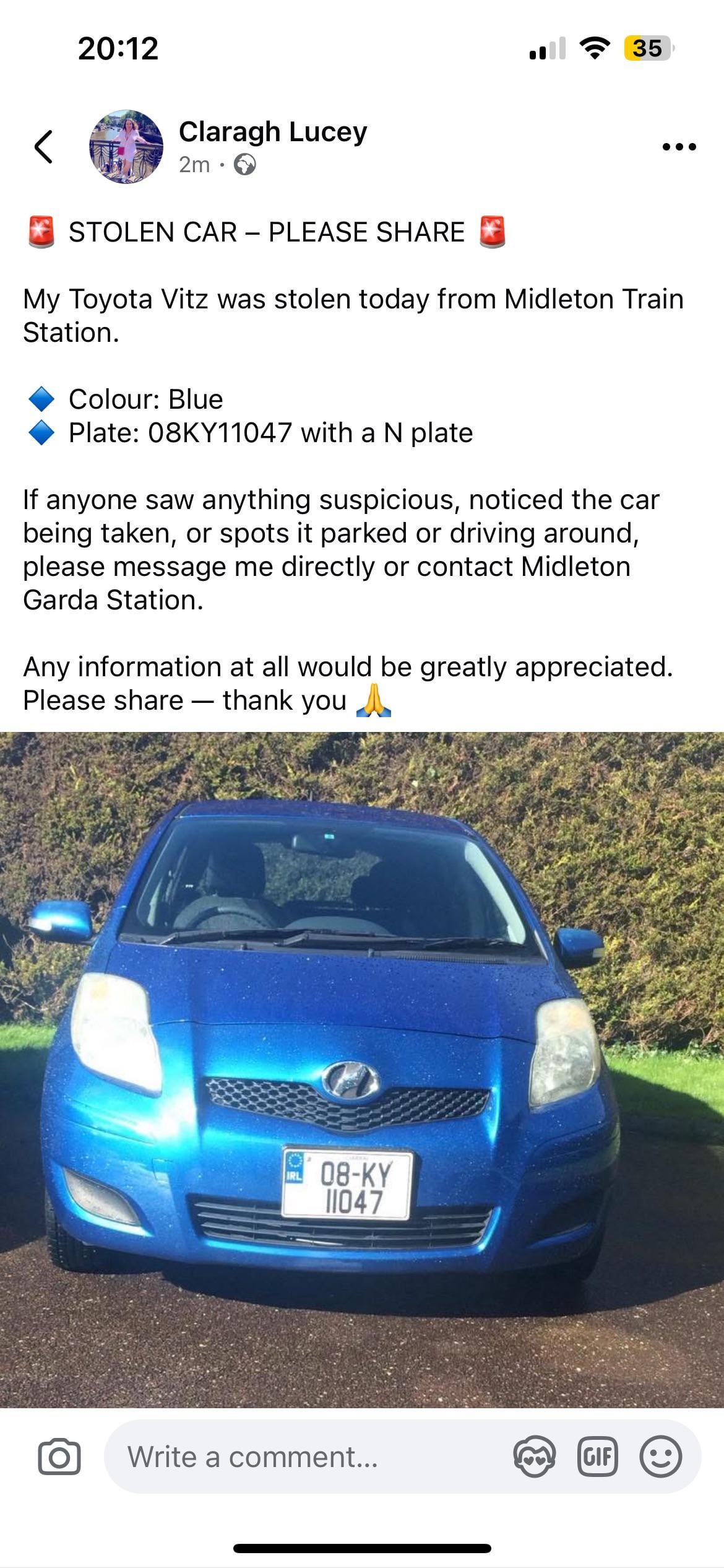 Auto gestohlen, Midleton, falls jemand Dashcam-Aufnahmen hat