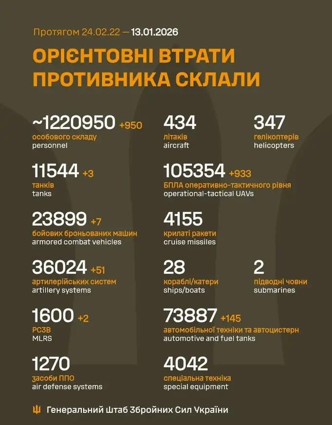 Verluste des russischen Militärs bis 13.1.2026