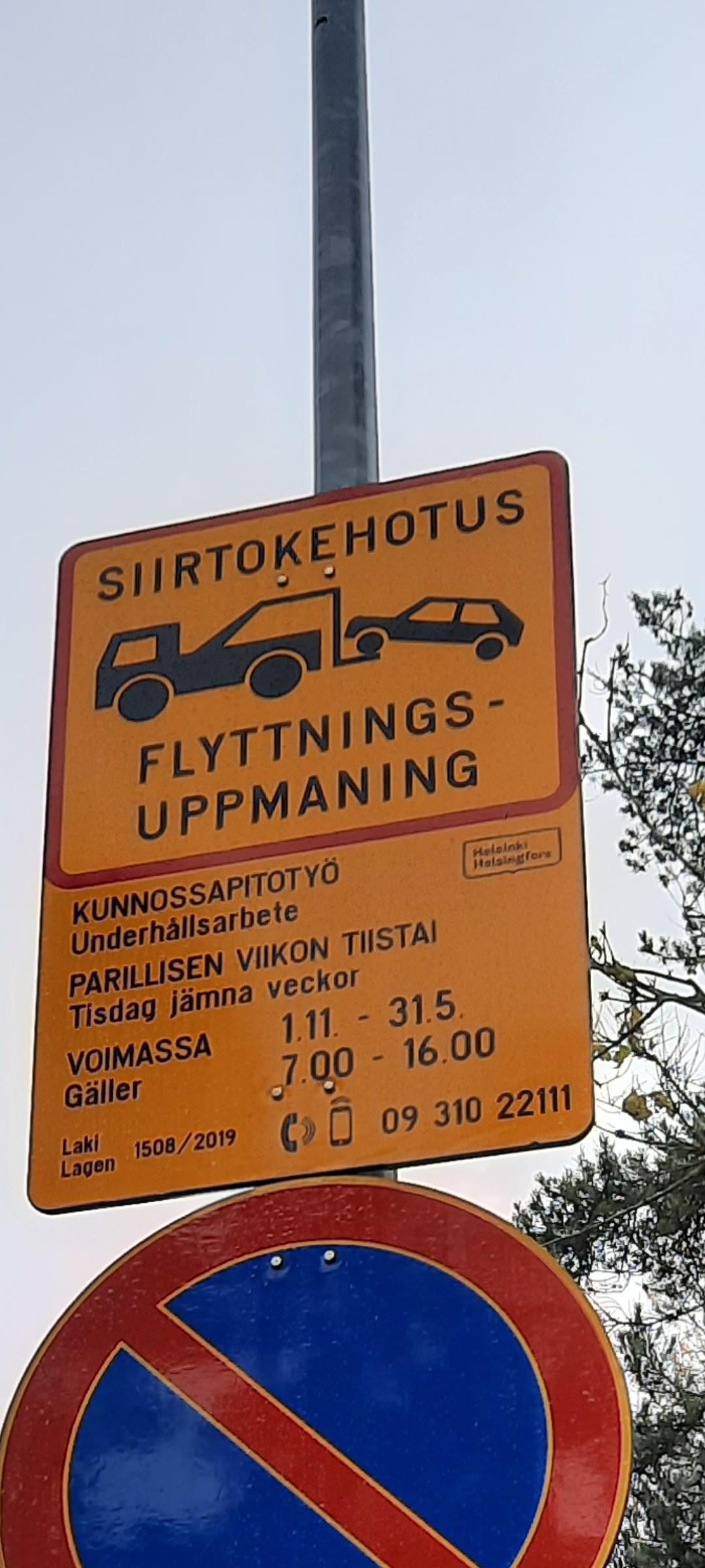 Nur eine freundliche Erinnerung, Ihr Auto an Schneeräumungstagen zu bewegen. In meiner Gegend ist das heute. Wenn Sie also in Haaga sind, bewegen Sie Ihr Auto, bevor es verloren geht. 😁