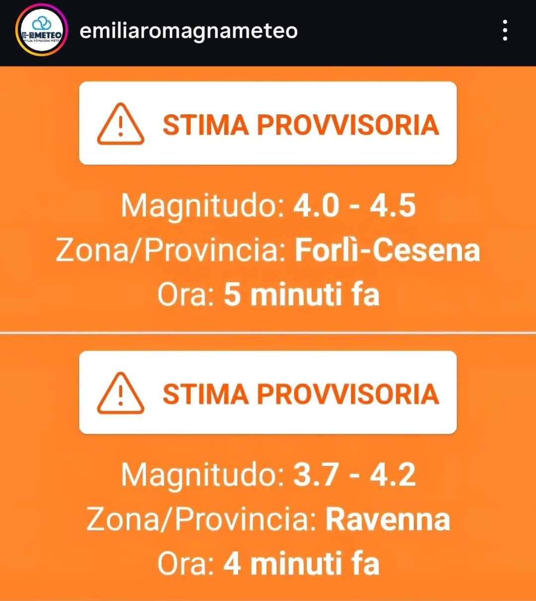 INGV ha segnalato ora sulla app android le due scosse.