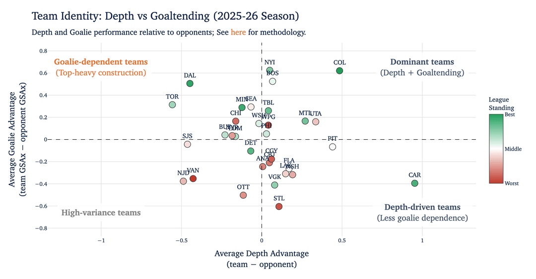 Der TL;DR ist eine ausgefallene Art gewichteter Durchschnitt, der effektiv angibt, wie viel des Kaders zu Torschüssen, Corsi-For, erwarteten Toren und Eiszeit innerhalb eines Spiels beiträgt. Für die Statistik-Nerds: Es geht um die Modellierung latenter Variablen.