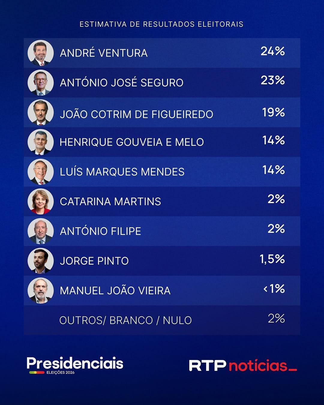Confirma que a candidatura de Marques Mendes está mesmo acabada e Gouveia é Melo também já está fora da margem de erro.