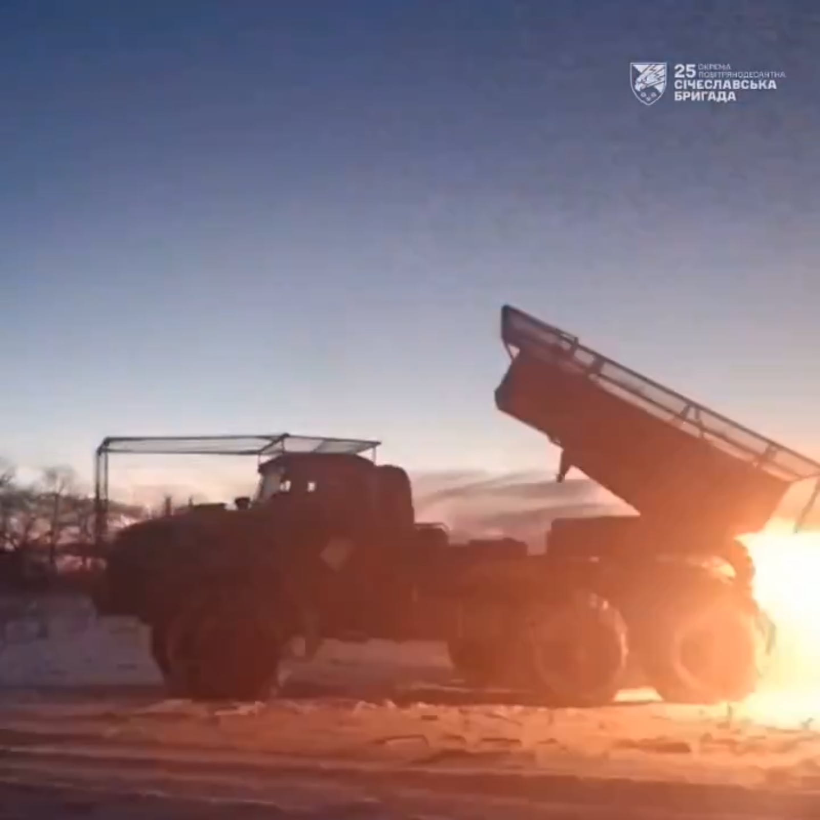 Die 25. ukrainische Luftlandebrigade beschoss russische Stellungen in Pokrowsk mit BM-21 Grad MLRS. Januar 2026.