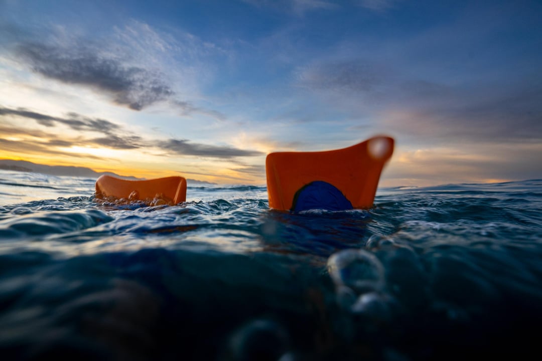 Ich habe meine Kamera mitgenommen, um bei Sonnenaufgang zu schwimmen.