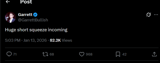 Es lohnt sich, seinem Bericht auf X zu folgen, er nannte auch den Squeeze und teilt interessante, aber einfache Strategien: